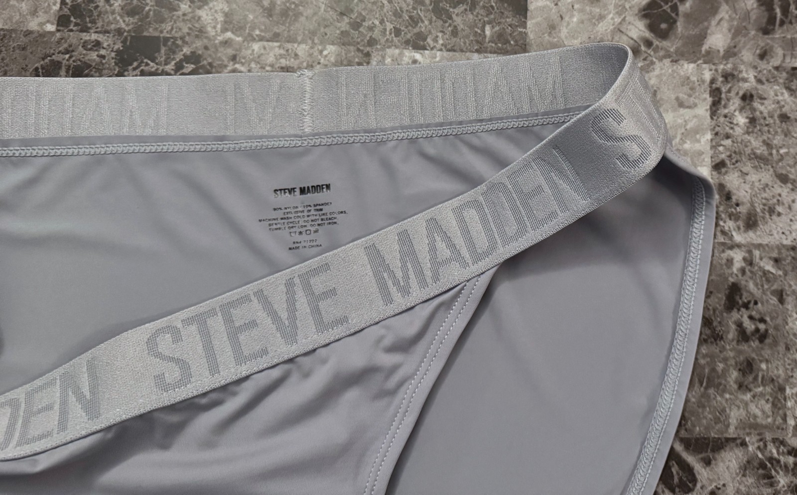 как выглядит NWOT STEVE MADDEN L XL LIGHT GRAY SMOOTH THICK LOGO WAISTBAND BIKINI PANTIES фото