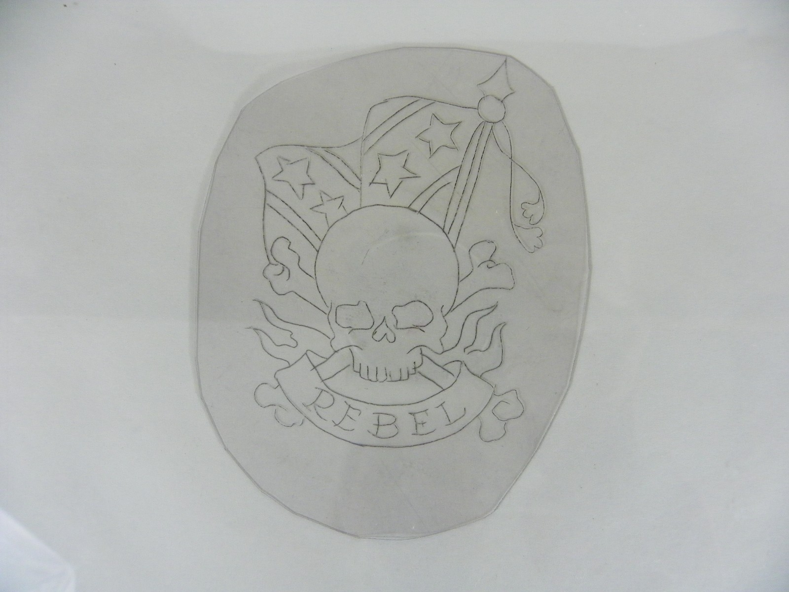 как выглядит Vintage Acetate Stencil "Rebel". Tattoo stencil. фото