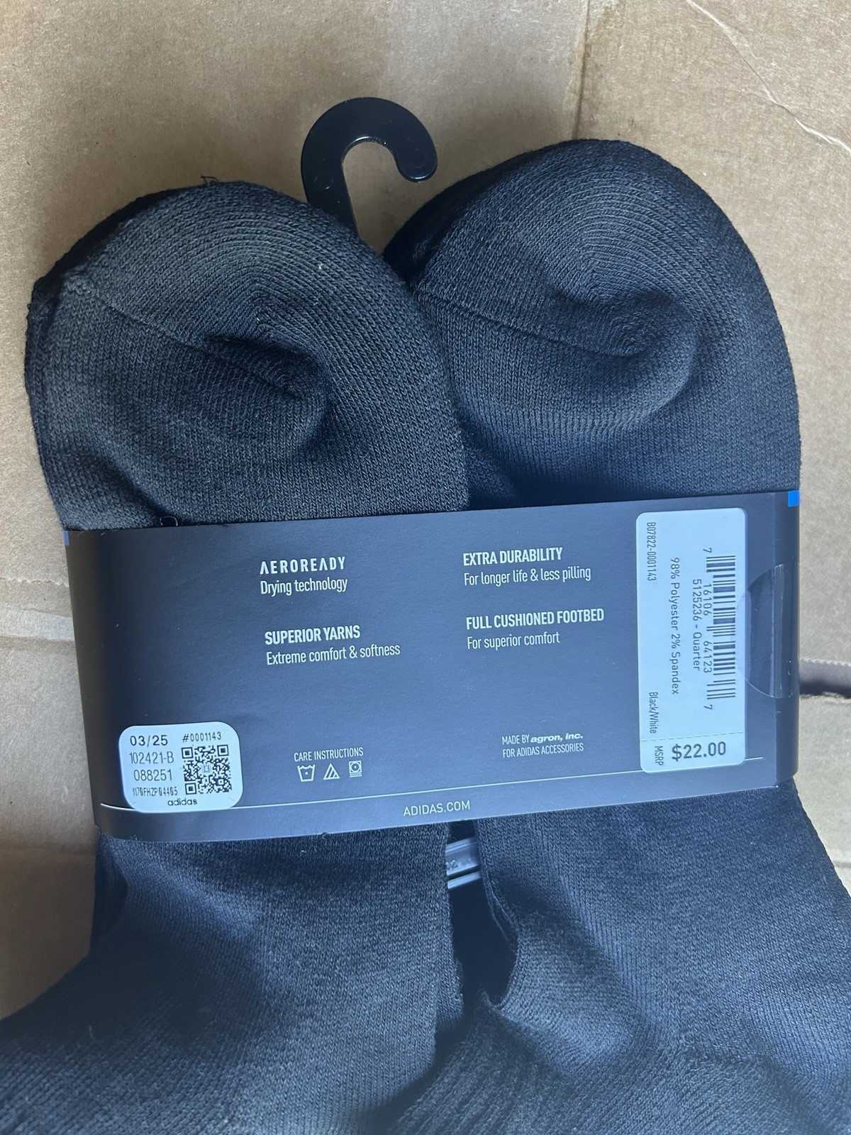 как выглядит Adidas Mens Cushioned Socks Aerodready Shoe Size 6-12 Black Ankle Low Cut 6 Pair фото