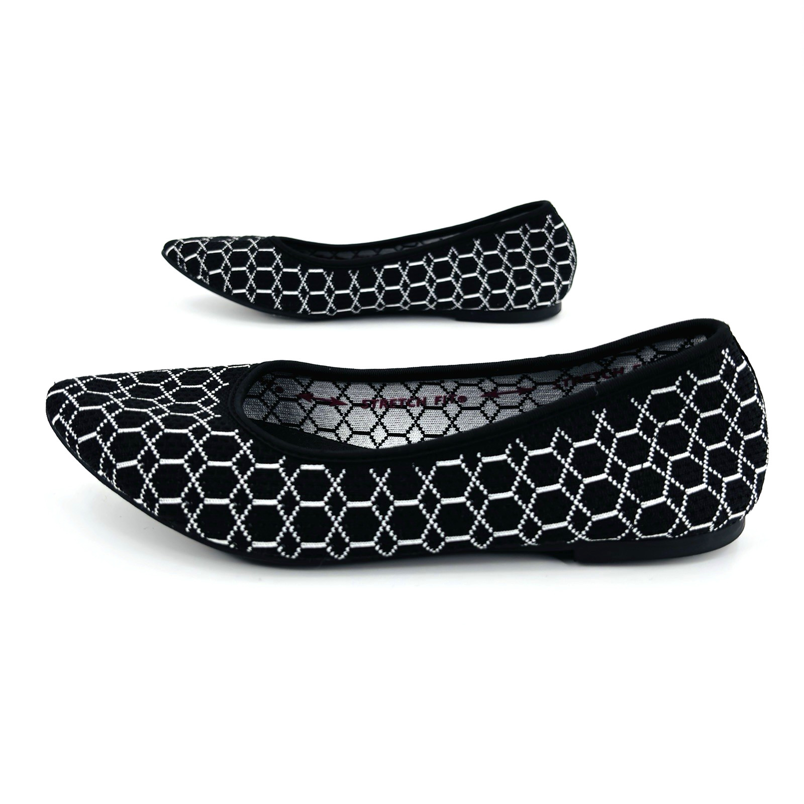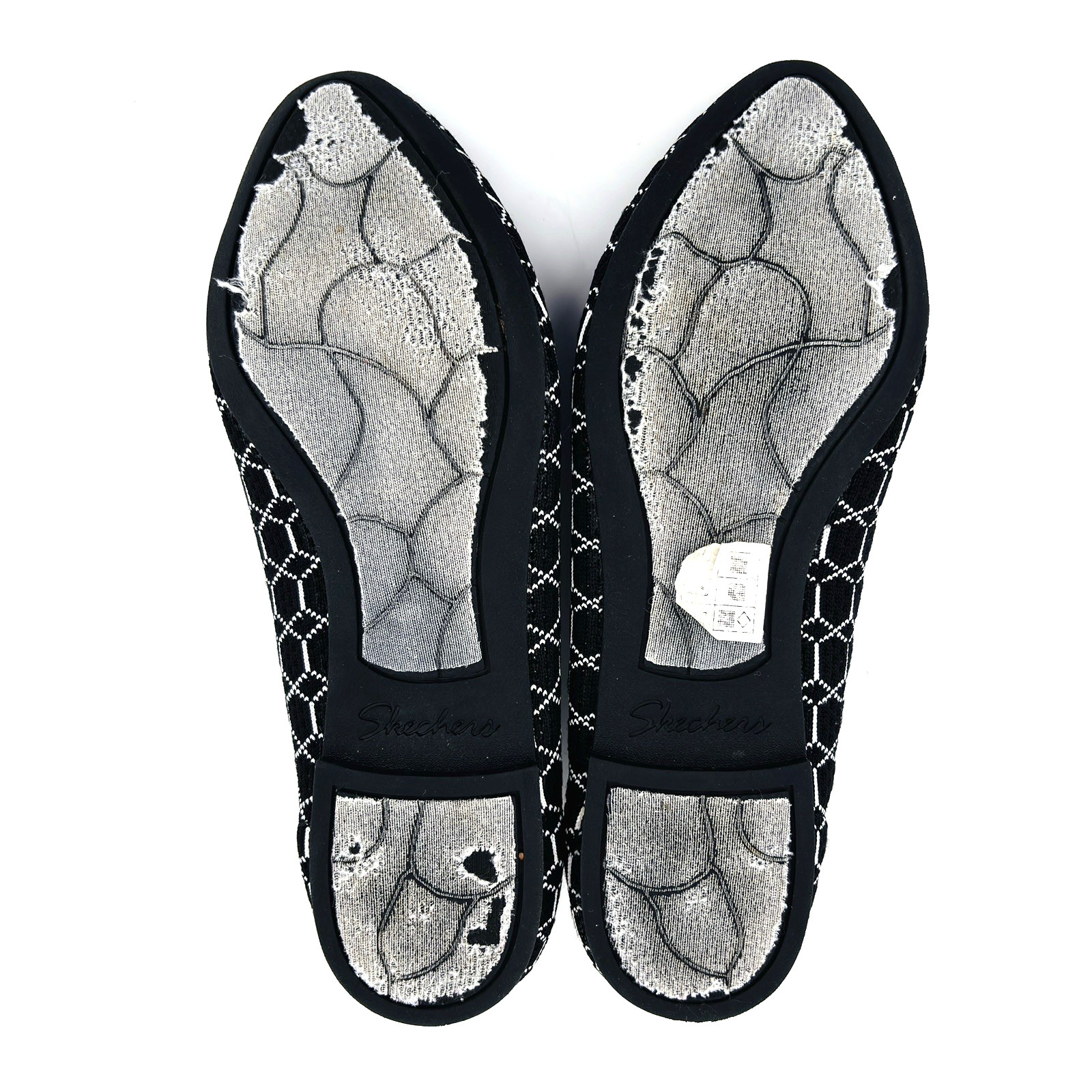 Womens 8 Skechers Cleo Crave Black White Geometric Casual Ballet Flats 158016