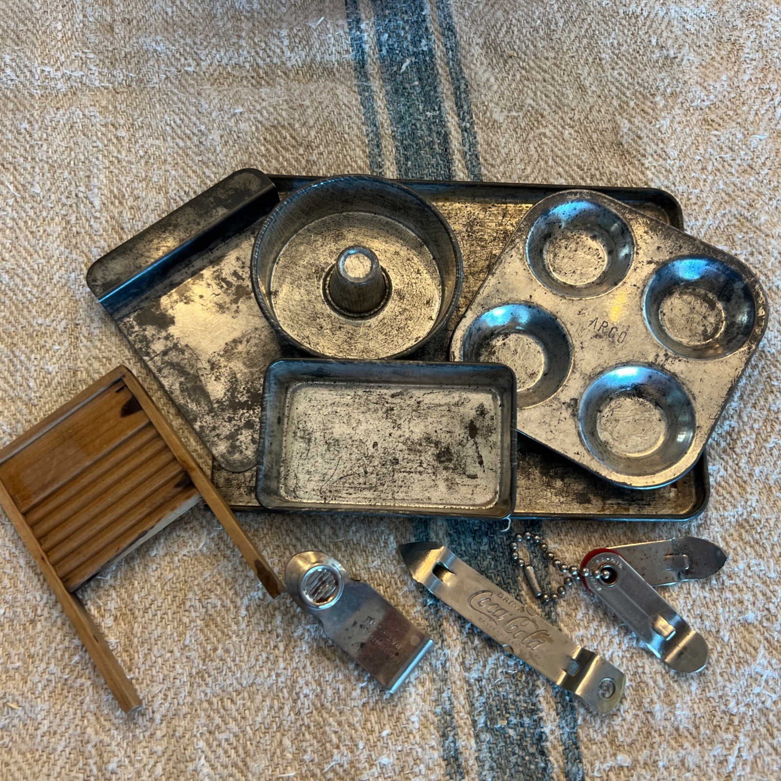 Lot Of Antique Vintage Kitchen Utensils Misc. Child s Bake Set
