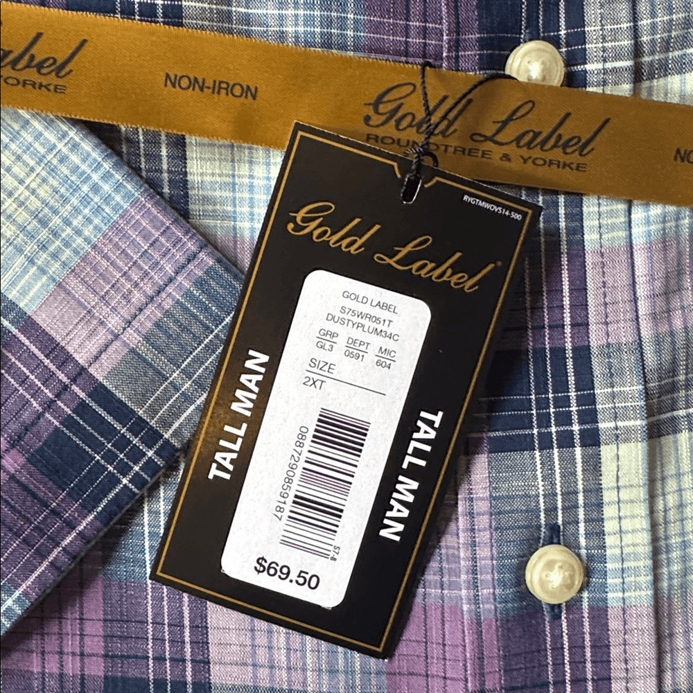 как выглядит Roundtree Yorke Gold Label Plaid Short Sleeve Button Up Shirt Non-Iron 2XT NWT фото