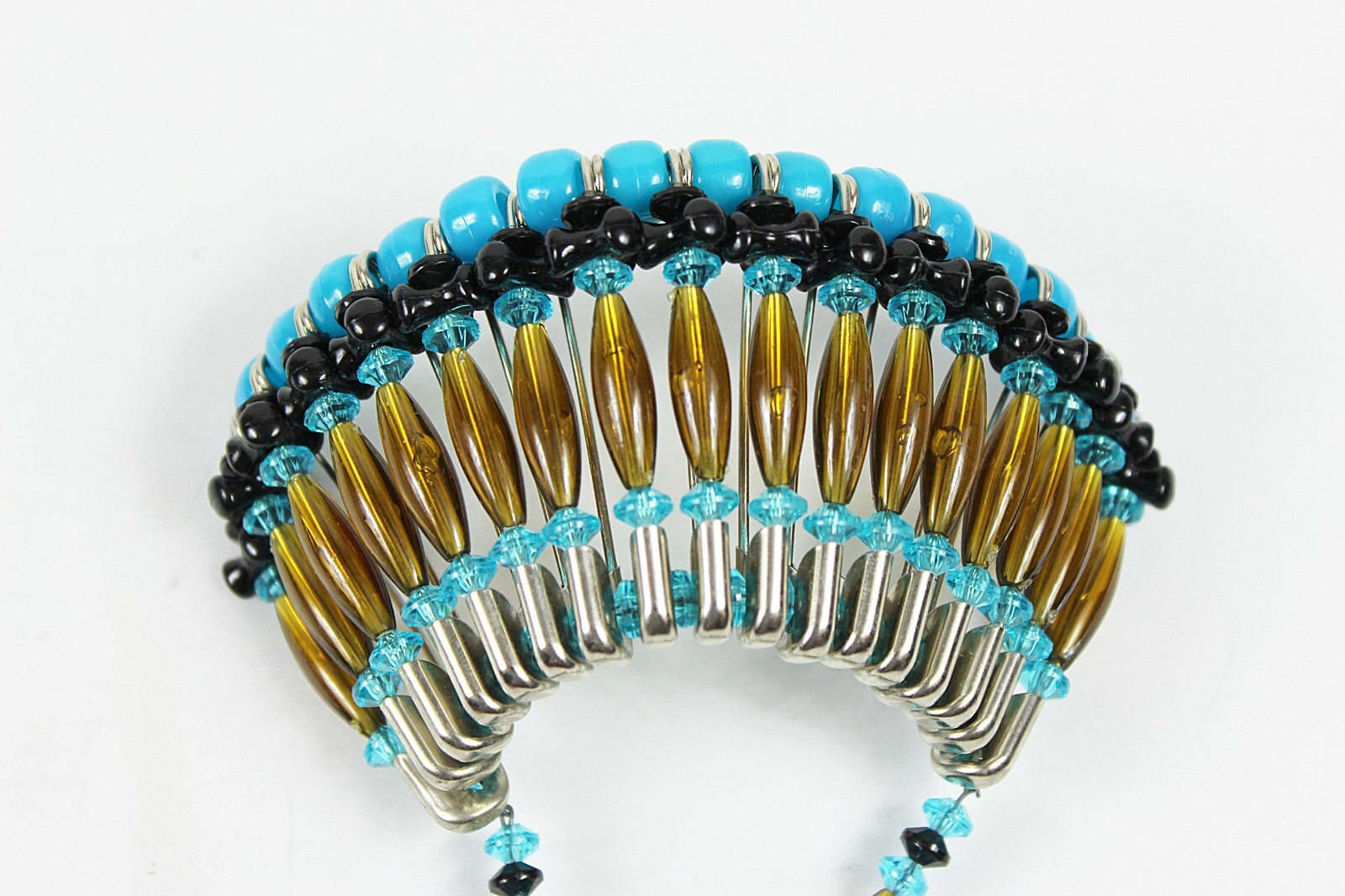 Vintage Handmade Beaded Western Style Indian Headdress Ornament Safety Pin Art 5