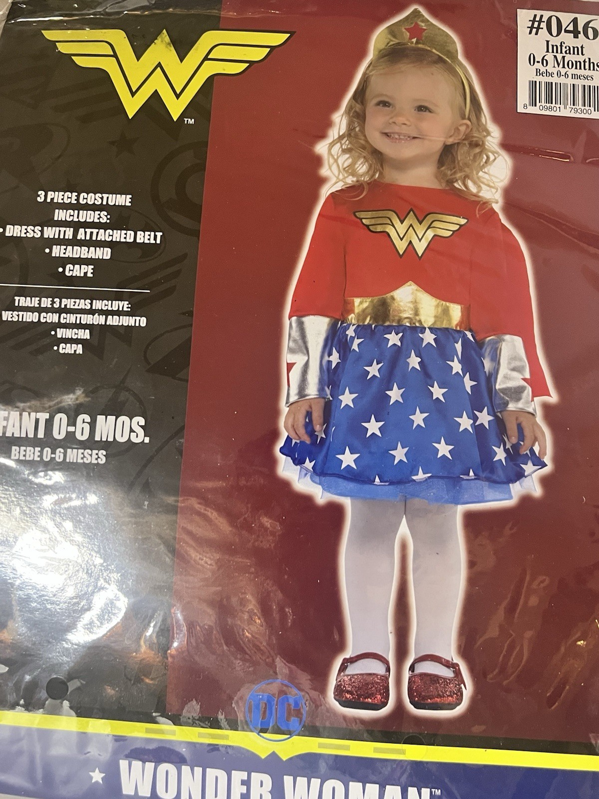 DC Wonder Woman Girl, Size Baby 0-6 Months, Halloween Costume 3 Pc: Dress, Cape