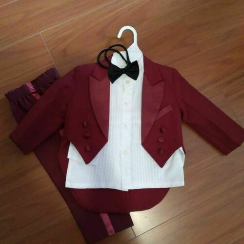 NEW Boy's 4 Pcs Formal Tuxedo Set KIDS Size S - 16 Holiday Special Burgundy