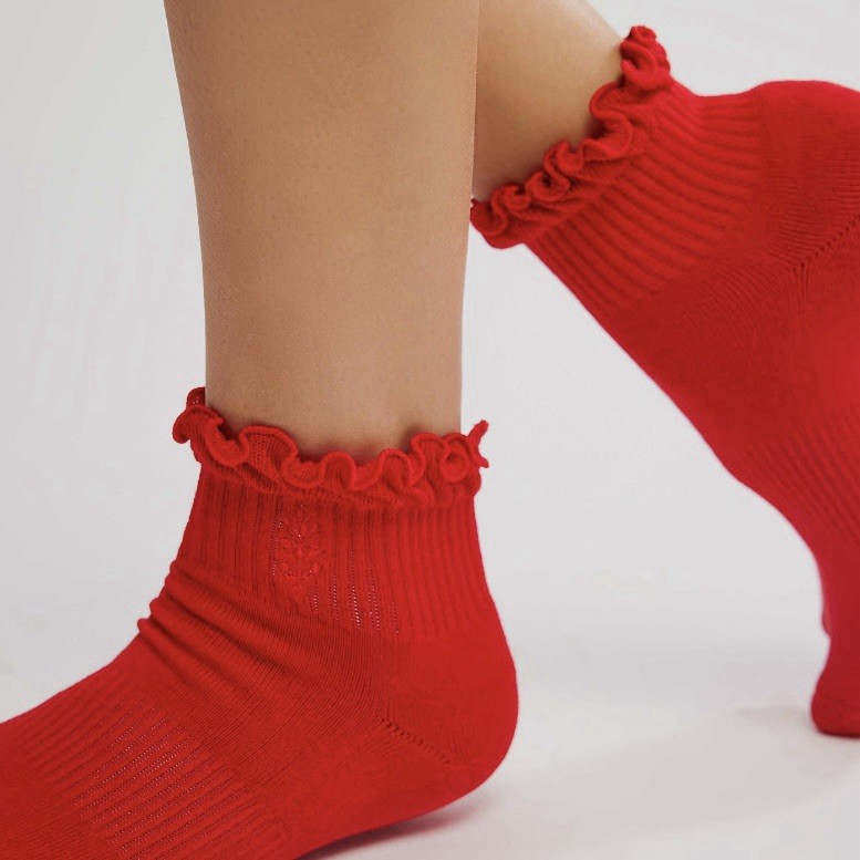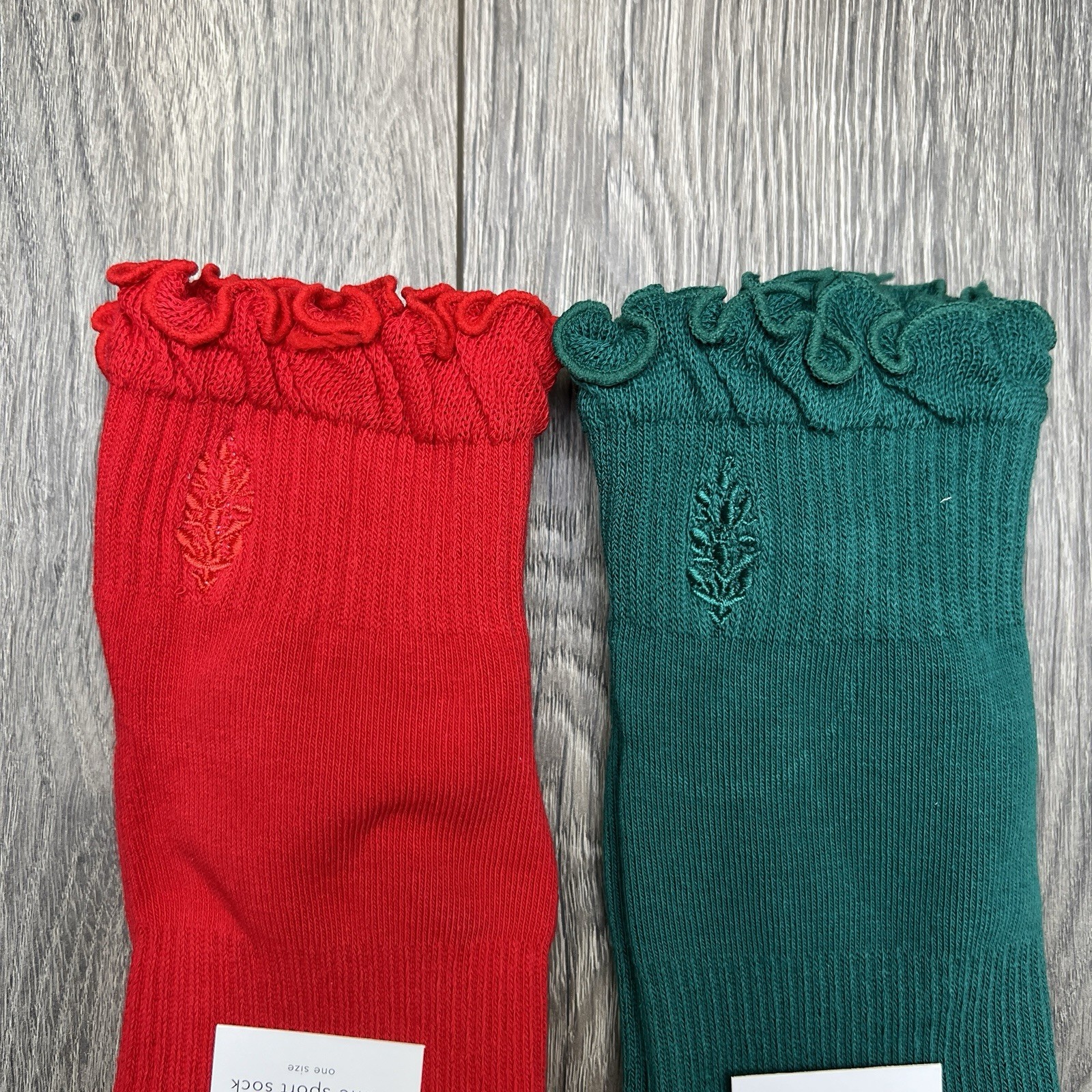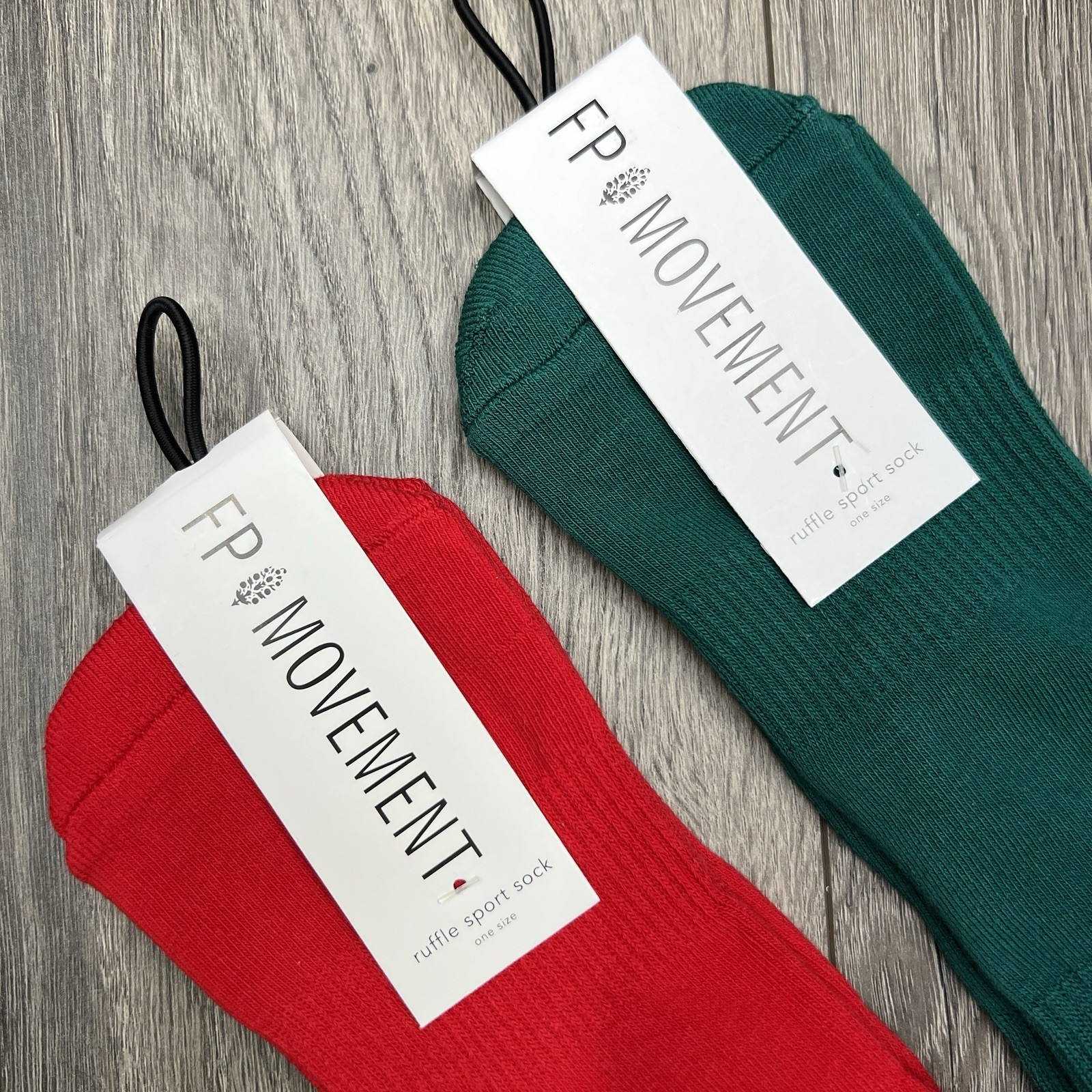Free People Movement Red Green Ruffle Sport Socks Winterberry One Size