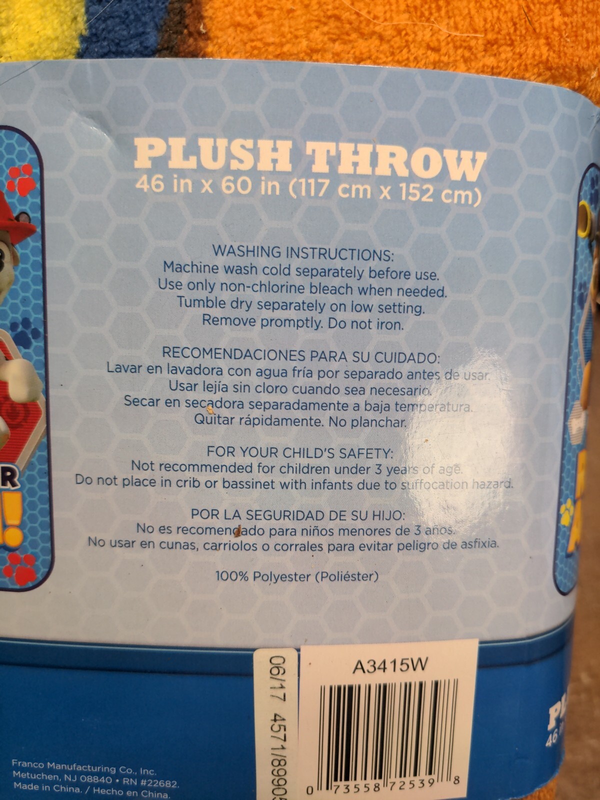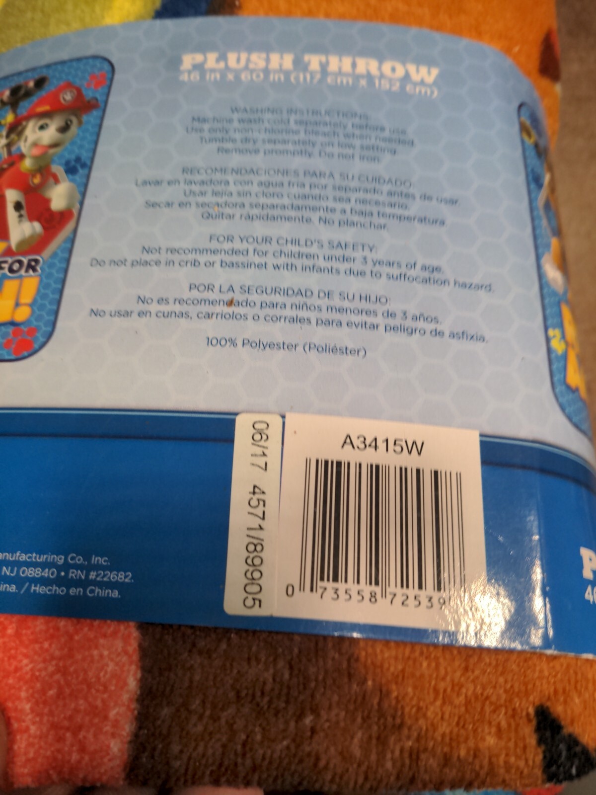как выглядит Paw Patrol Blanket, Nickelodeon 2016 100 Polyester - Never Used фото