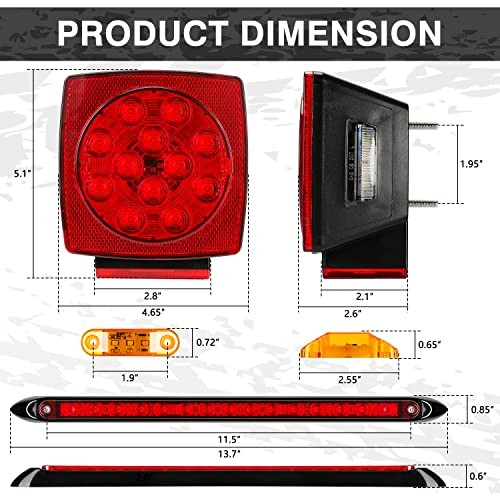 Boat LED Trailer Lights Kit and Light Bar with Wiring Harness Combined Stop,