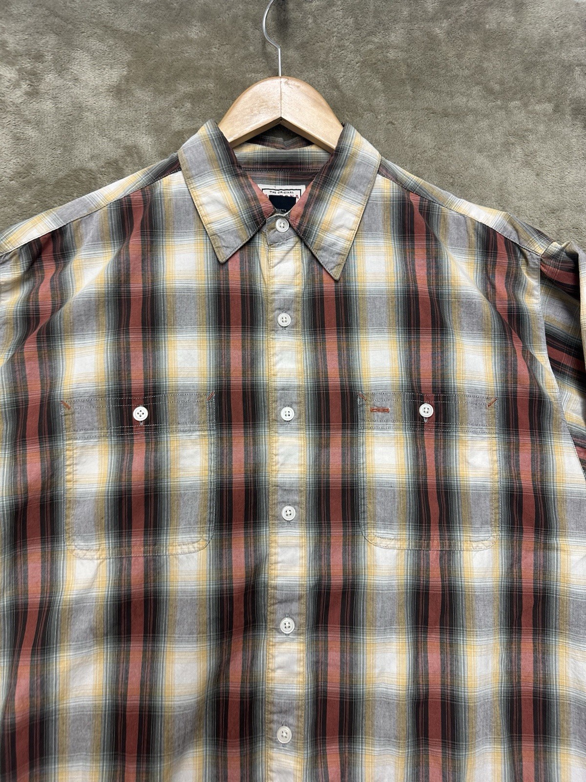 как выглядит Arizona Shirt Mens Size Medium Long Sleeve Button Up Brown red Plaid Pockets фото