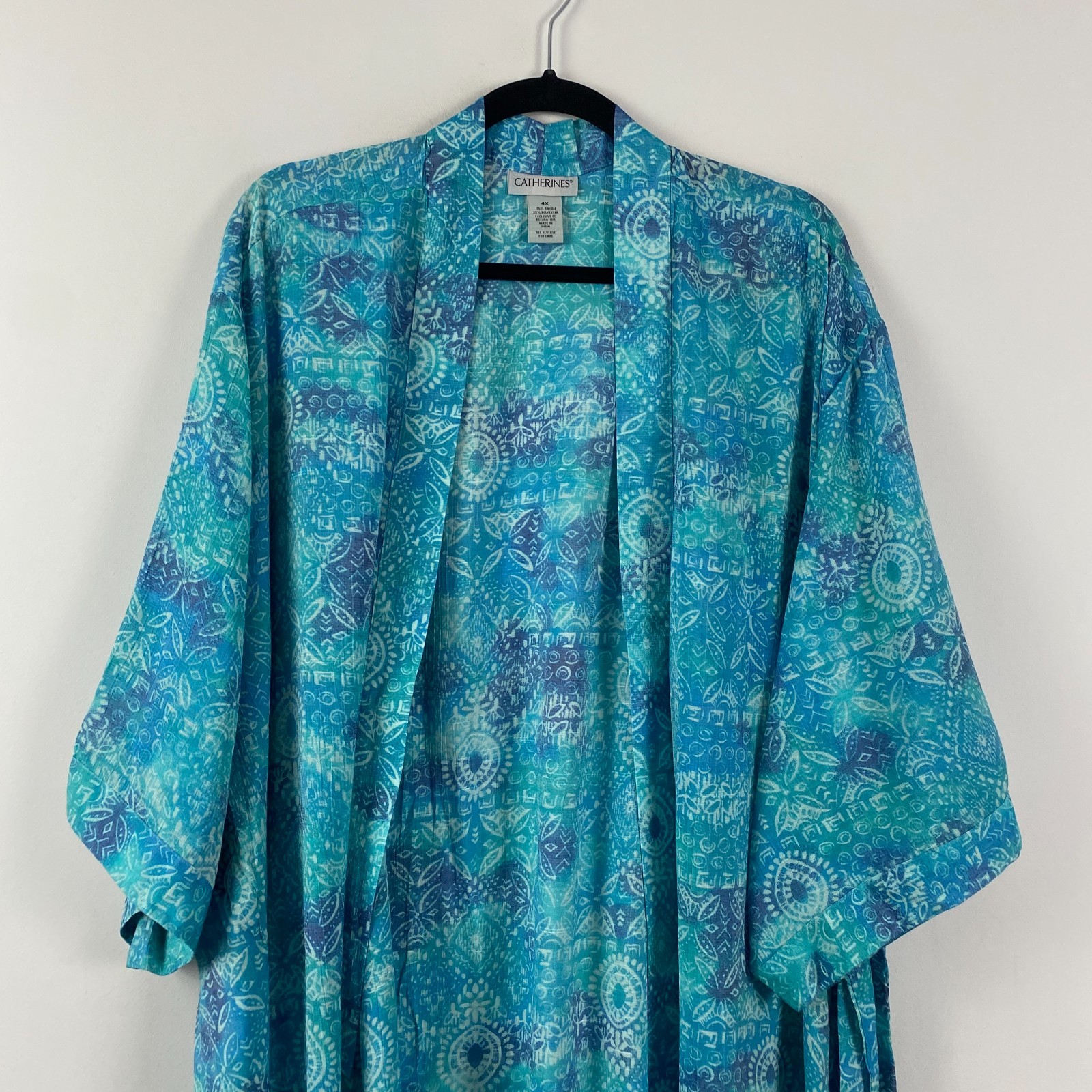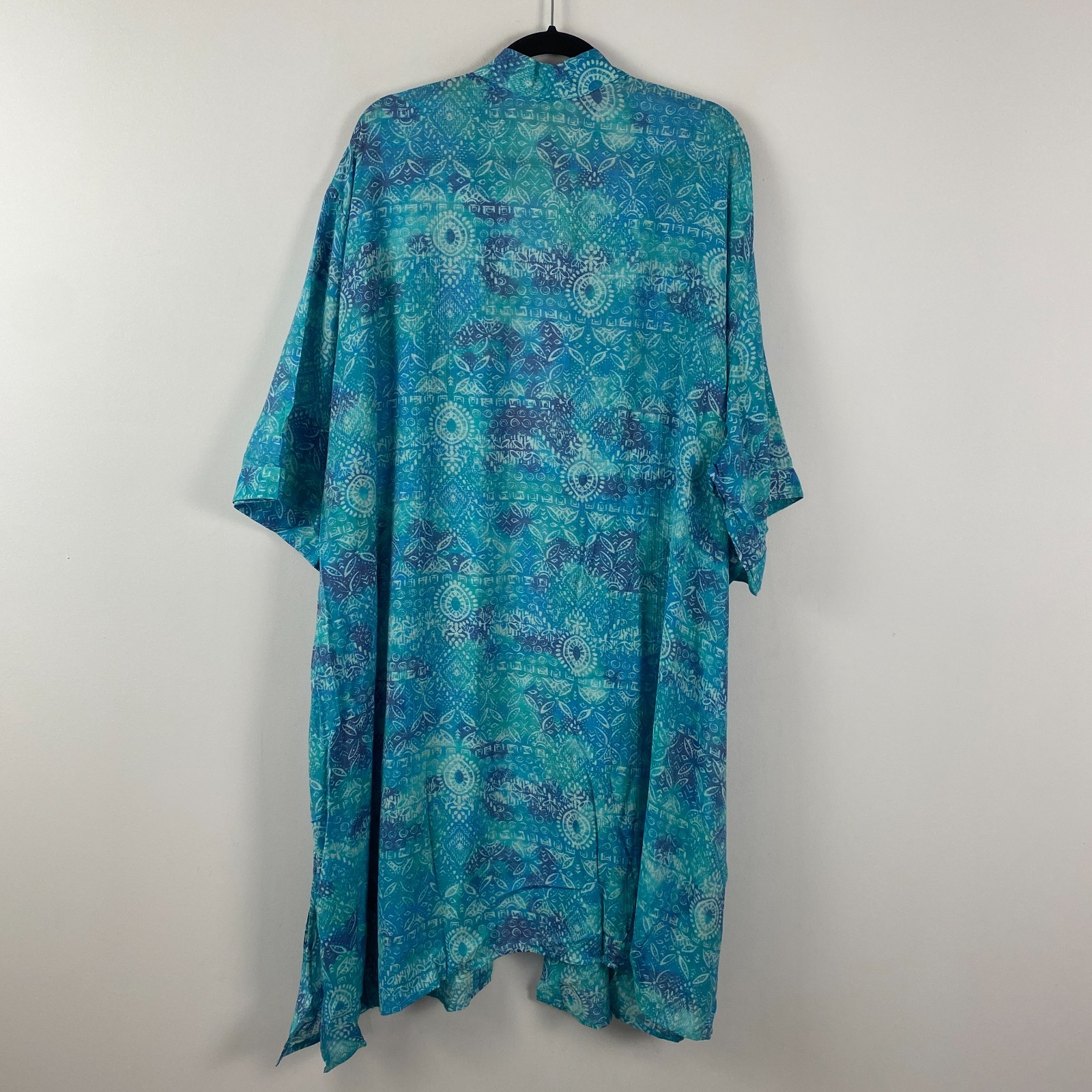 как выглядит Catherines Open Front Kimono Cardigan Size 4X Blue Turquoise 3/4 Sleeves фото