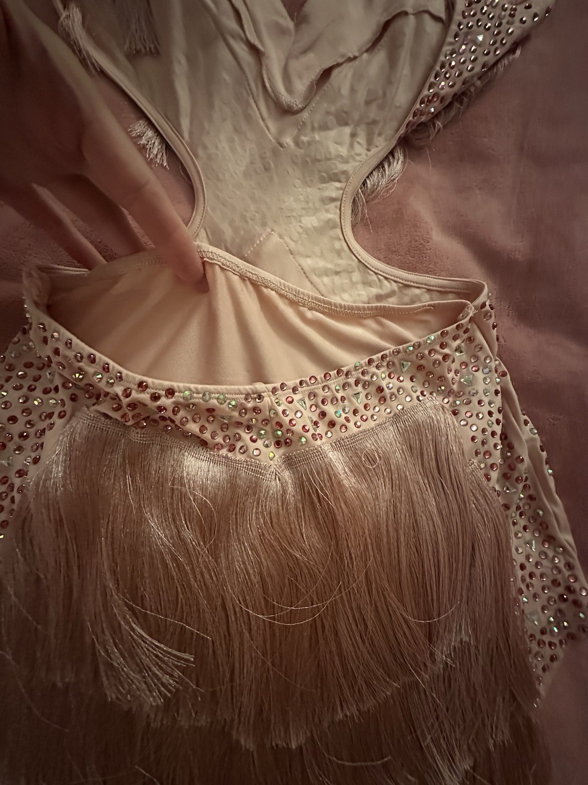 как выглядит Pink Rhinestone Fringe Tassel Latin Dance Outfit Size Small фото