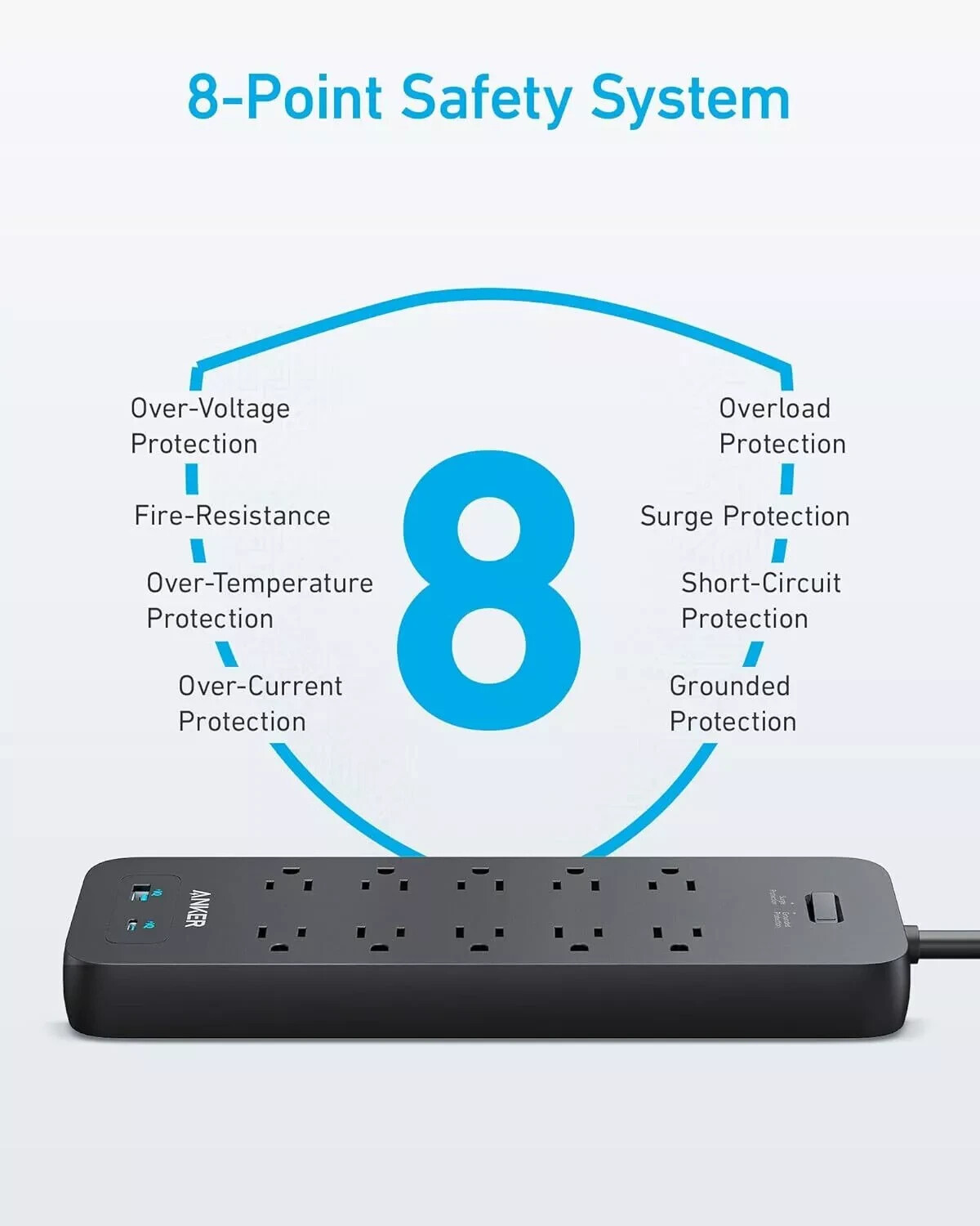 Anker Power Strip Surge Protector 2100J , 6Ft/1.8m Extension Cord with 10 Outlet