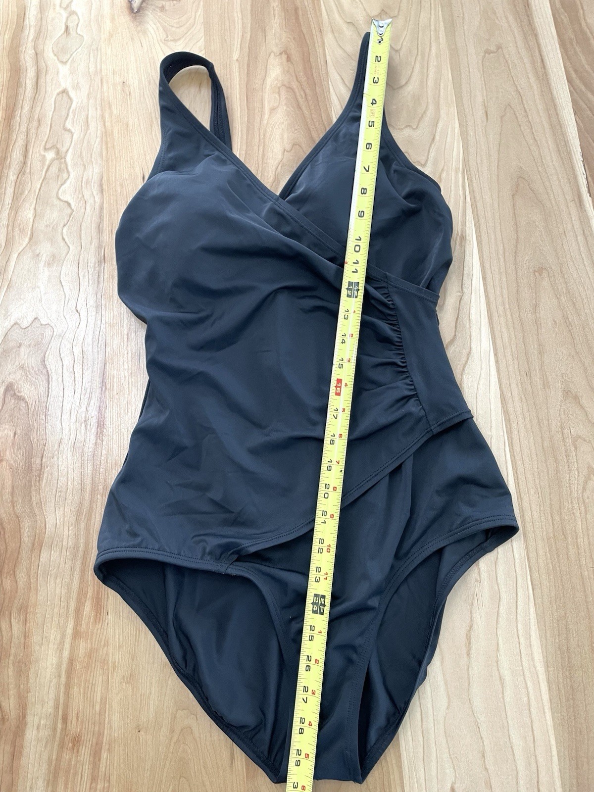 как выглядит Jantzen Classics Black Surplice One Piece Swimsuit, Sz 16 фото