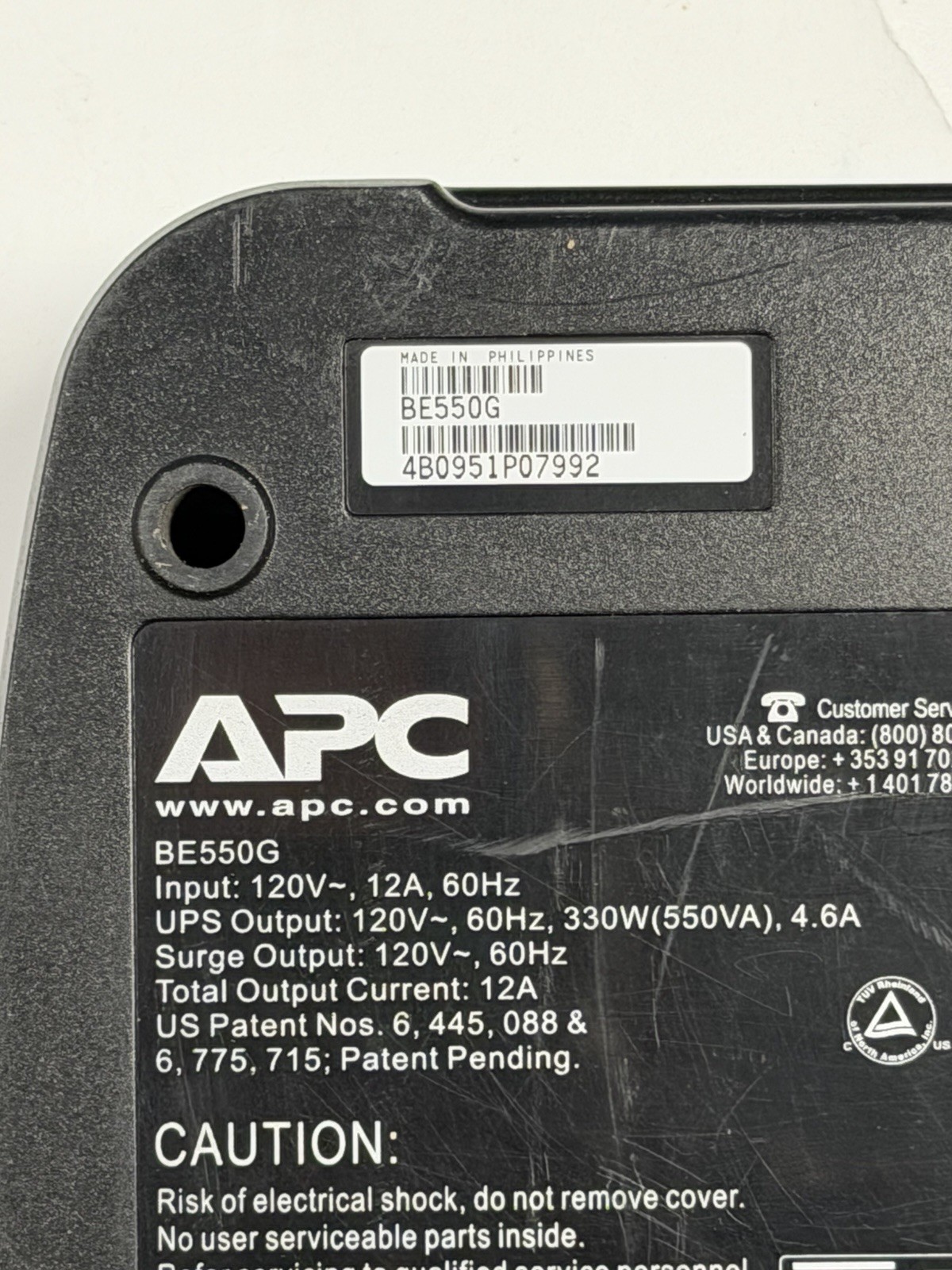 APC Back-UPS 550 Backup Battery Surge - No Battery BE550G