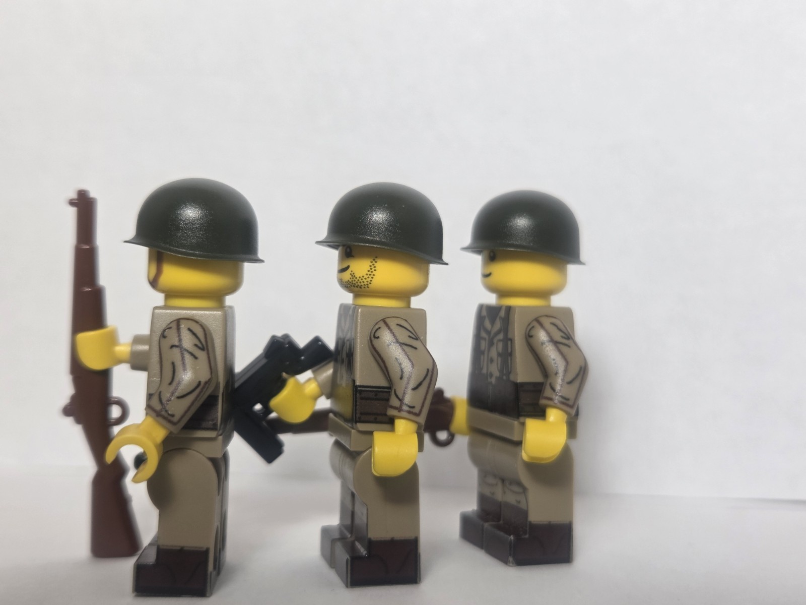 3 Lego WW2 Custom US Squad With Brickarms Weapons and Helmets