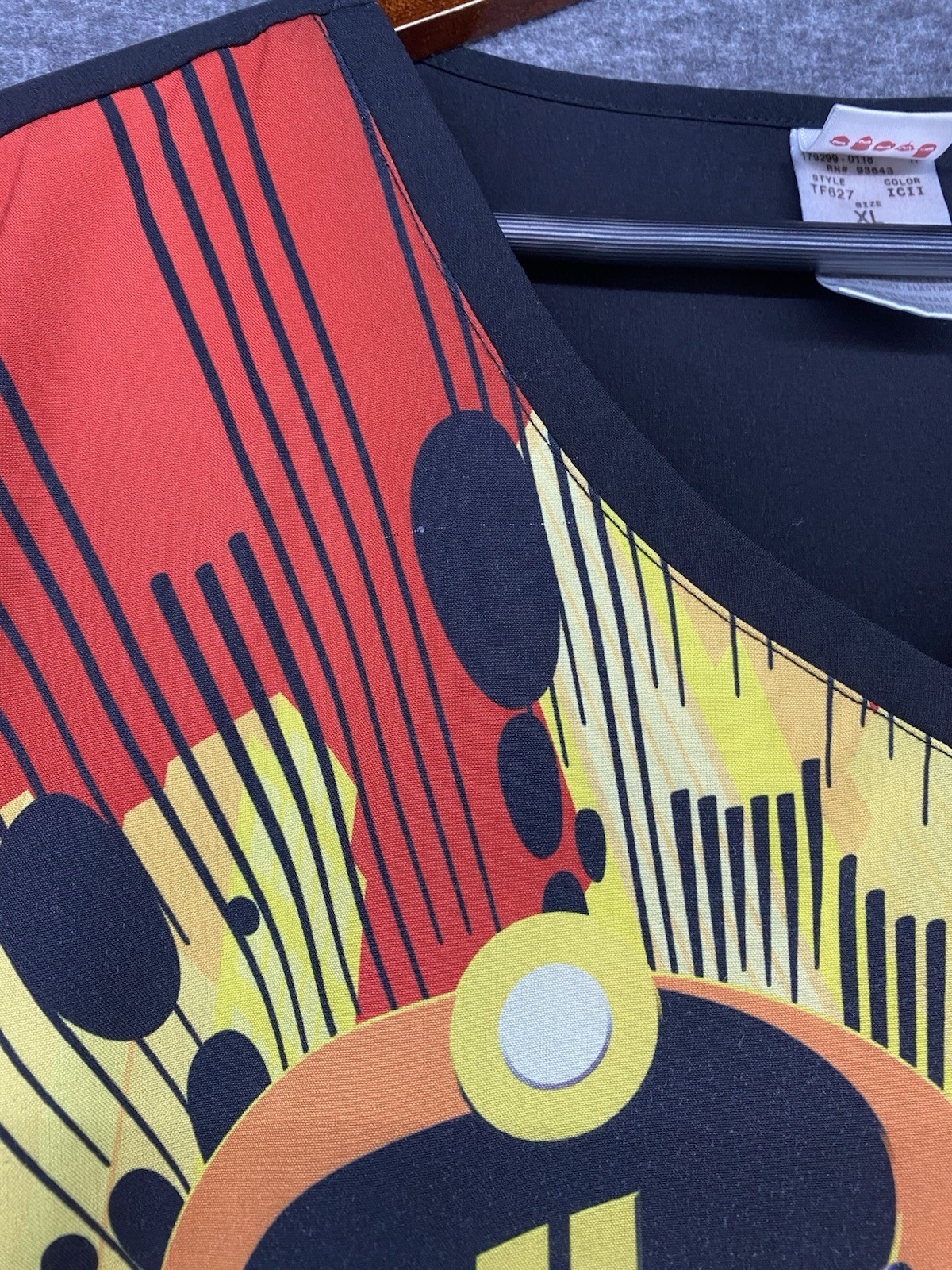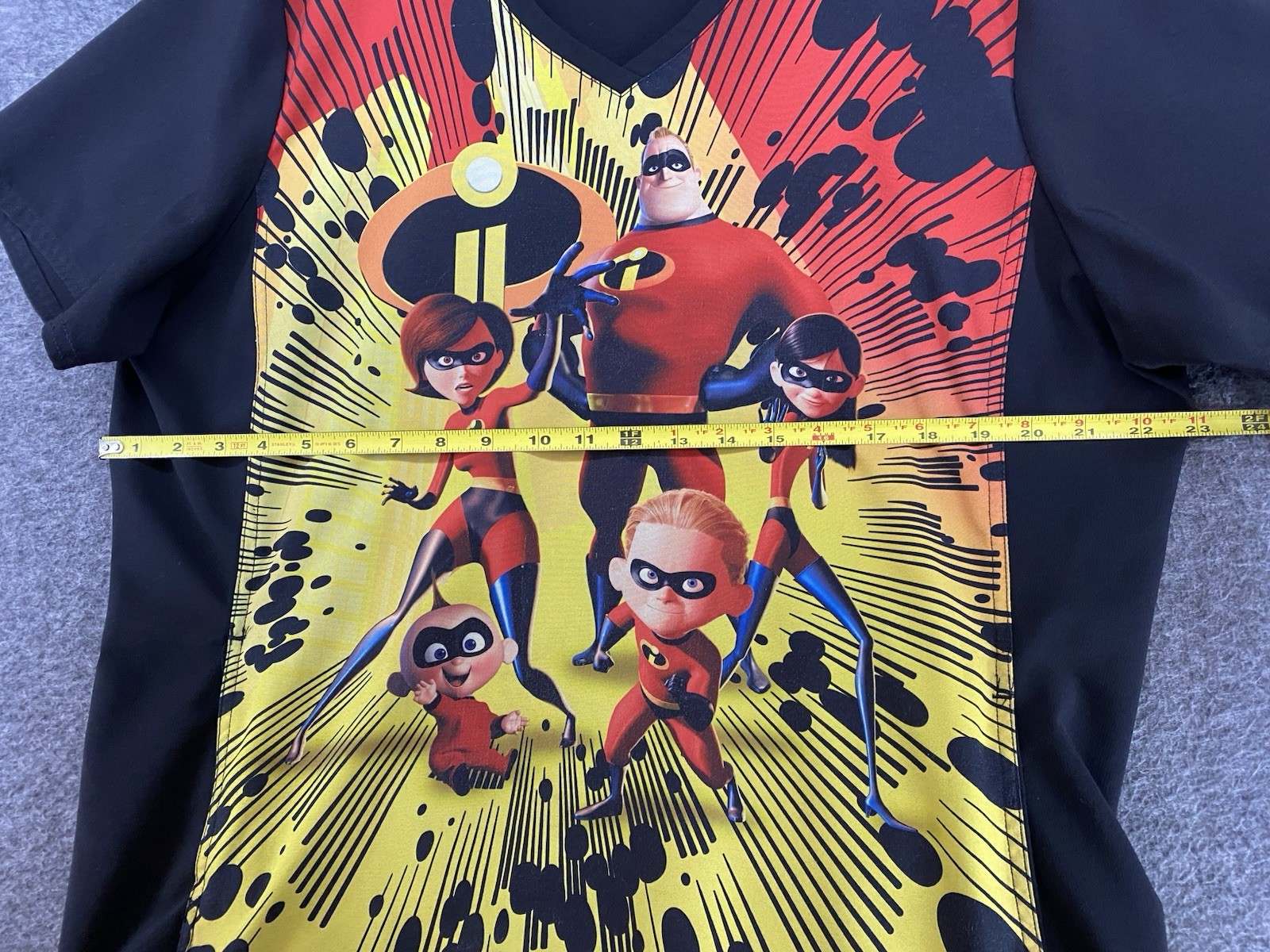 Disney Pixar Incredibles 2 Scrub Top Women s Size XL Front Pockets Short Sleeve