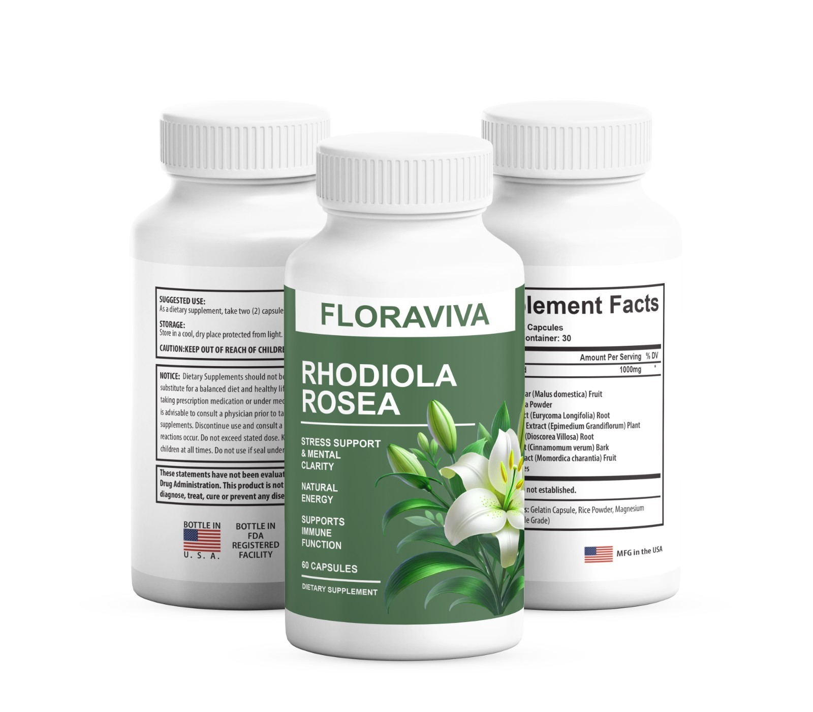 3-Pack Rhodiola Rosea Capsules - Floraviva for Energy, Focus, Mood