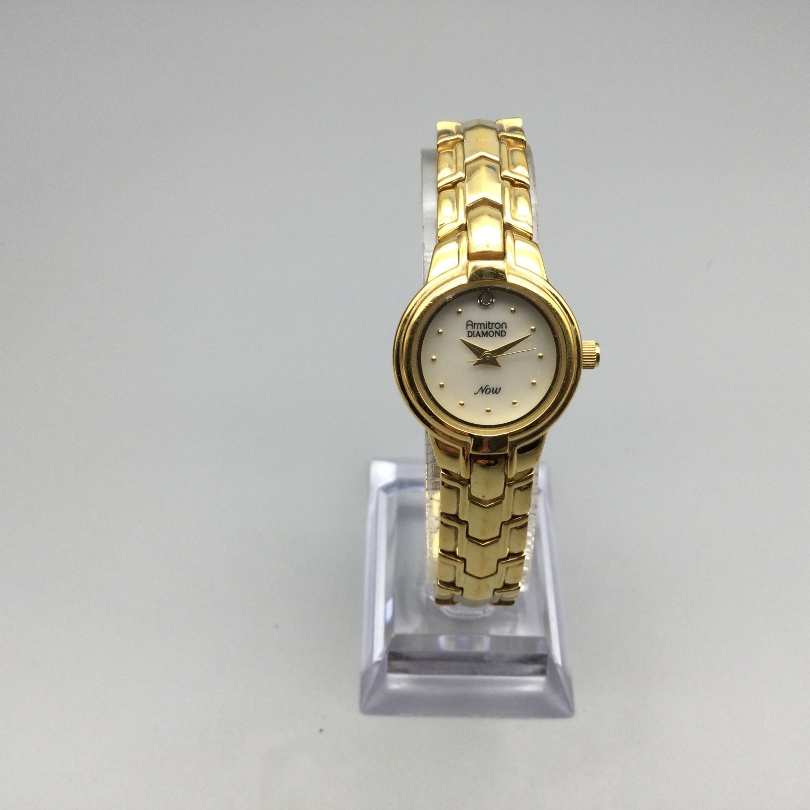 Armitron Now Diamond Watch Women 23mm Gold Tone Bracelet New Battery 6.75
