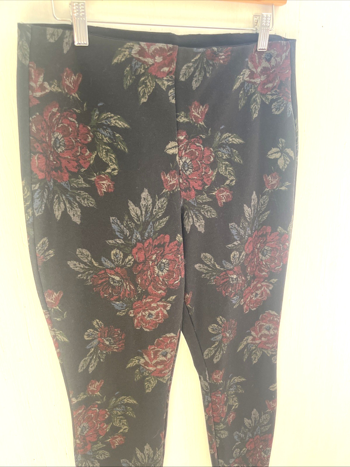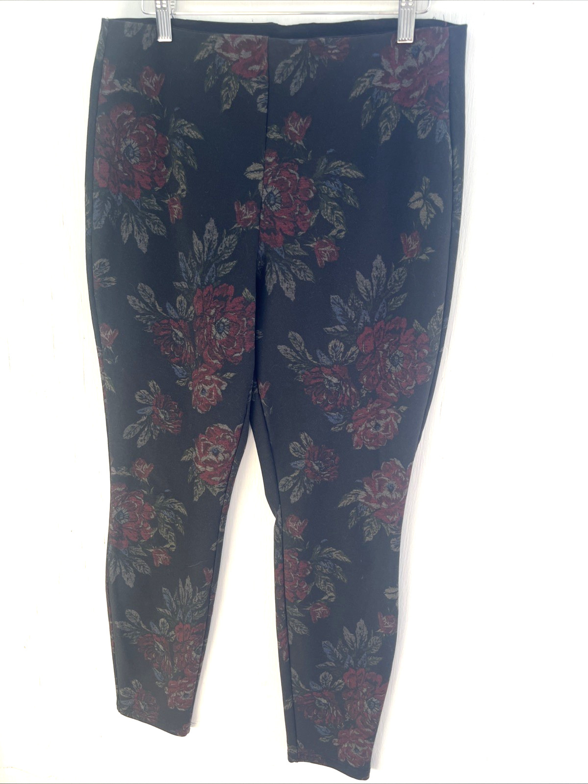 WHITE HOUSE BLACK MARKET Black Floral Legging Pants Stretch Pull on Size L