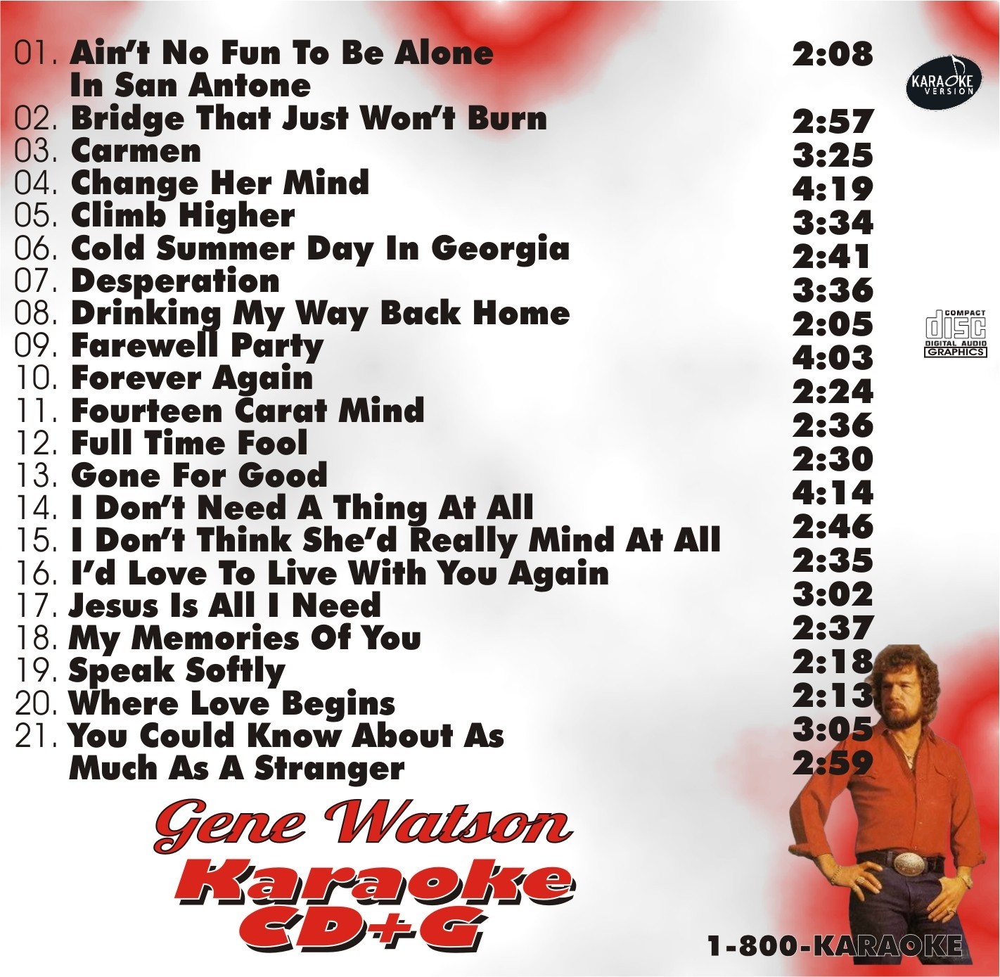 CUSTOM KARAOKE GENE WATSON 21 GREAT SONG cdg CD G RARE FAREWELL PARTY 14 CARAT