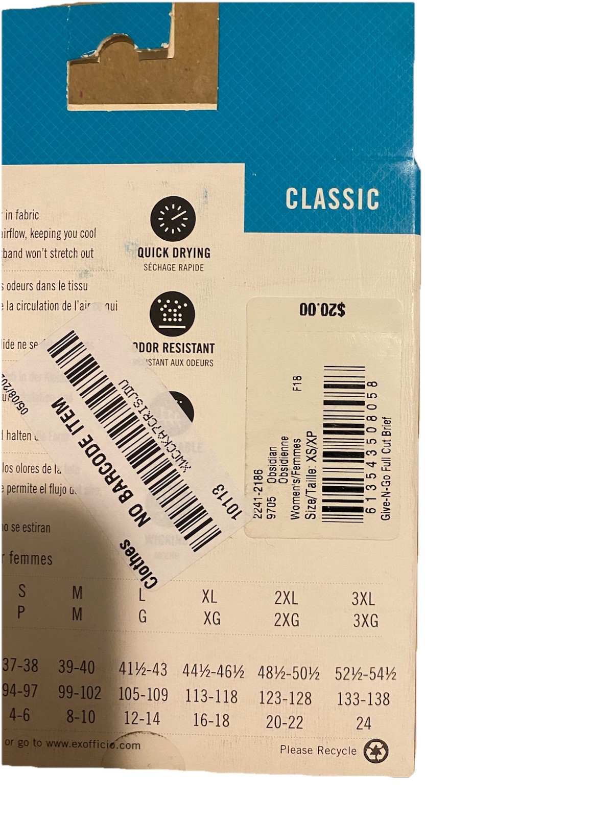ExOfficio Give-N-Go BIKINI BRIEF Obsidian Woman Travel Mesh Panties Size XS