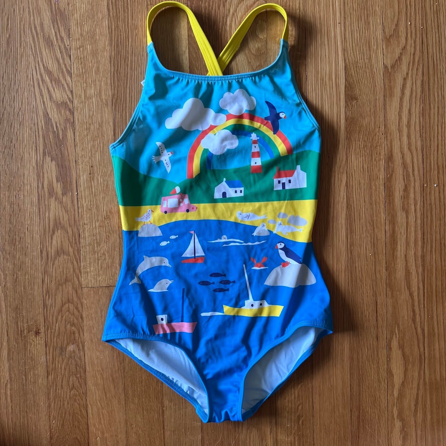 Boden One Piece Girl's Bathing Suit Coastal Scene Beach Swim 11-12 Years New