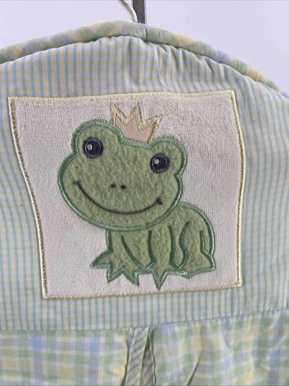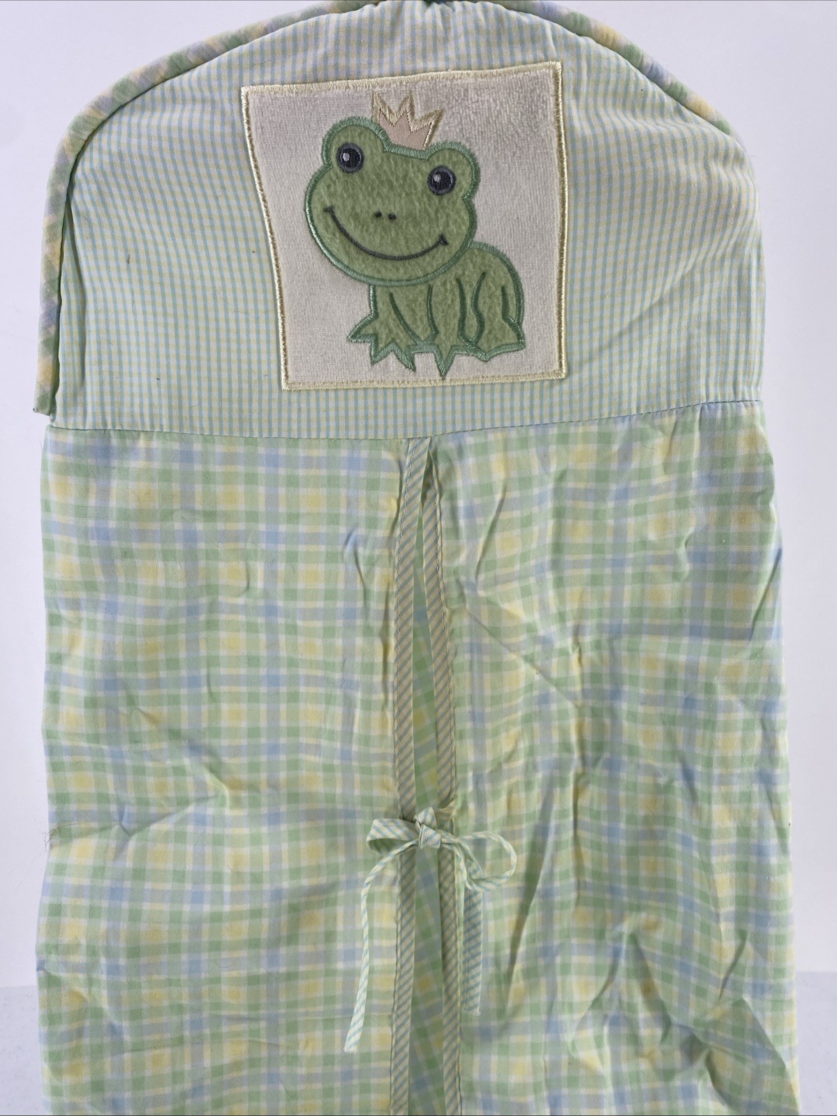 как выглядит Lambs Ivy Froggy Tales Diaper Stacker Prince Frog Green Yellow Plaid Nursery фото