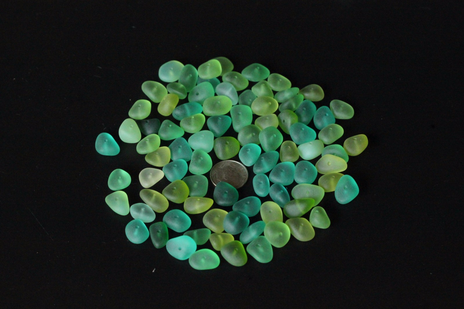 как выглядит center drilled sea beach glass 50 pcs lot green lime sea-green aqua jewelry use фото
