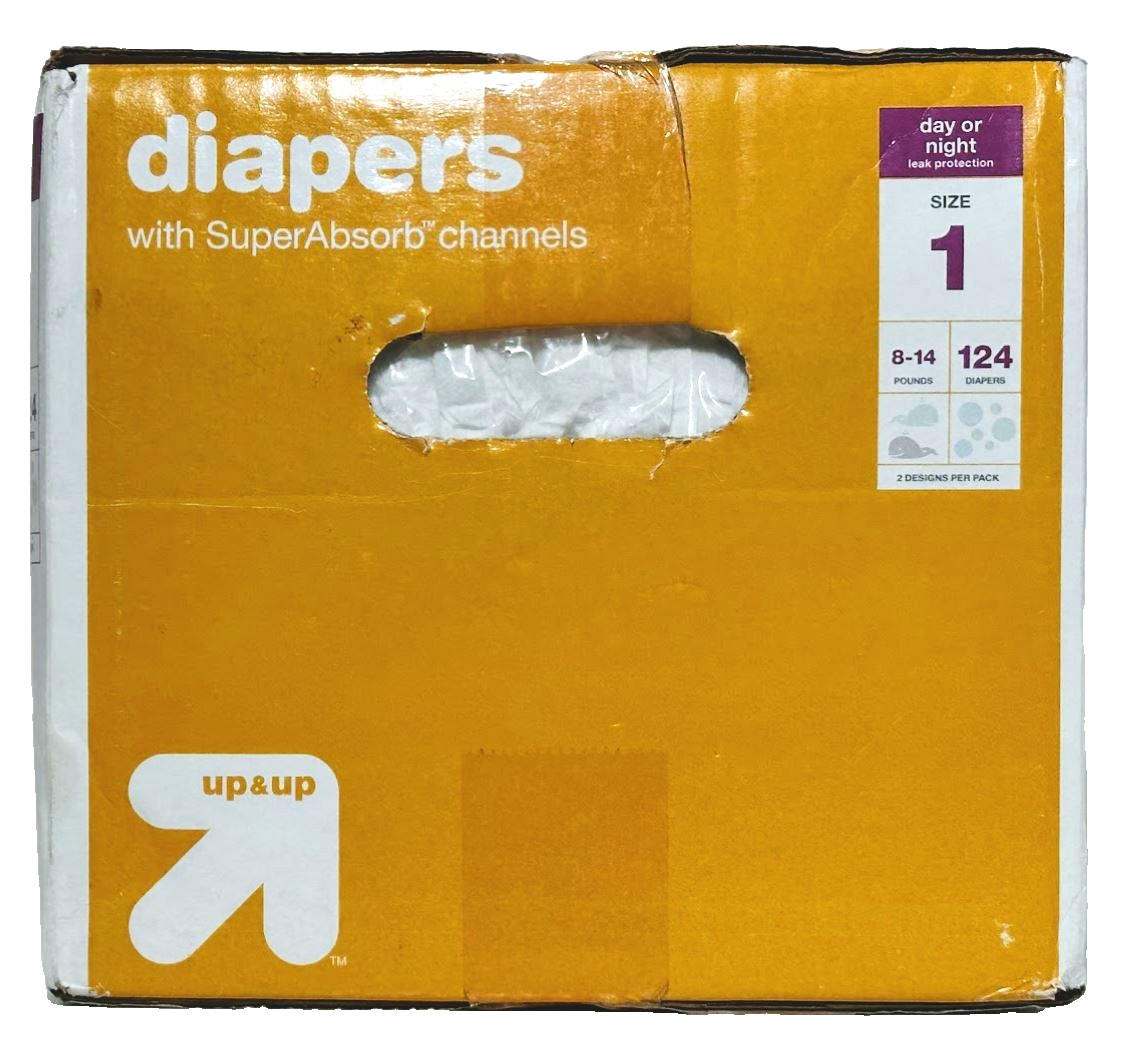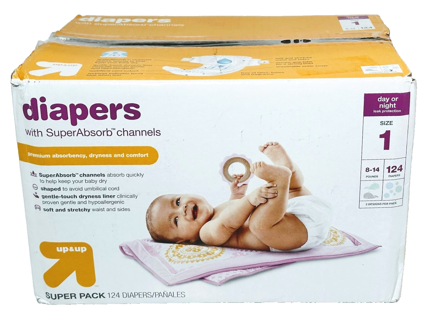 Up Up Sz 1 Diapers Super Pack 124 Count 8 14 lbs Premium Absorbency Hypoallerg