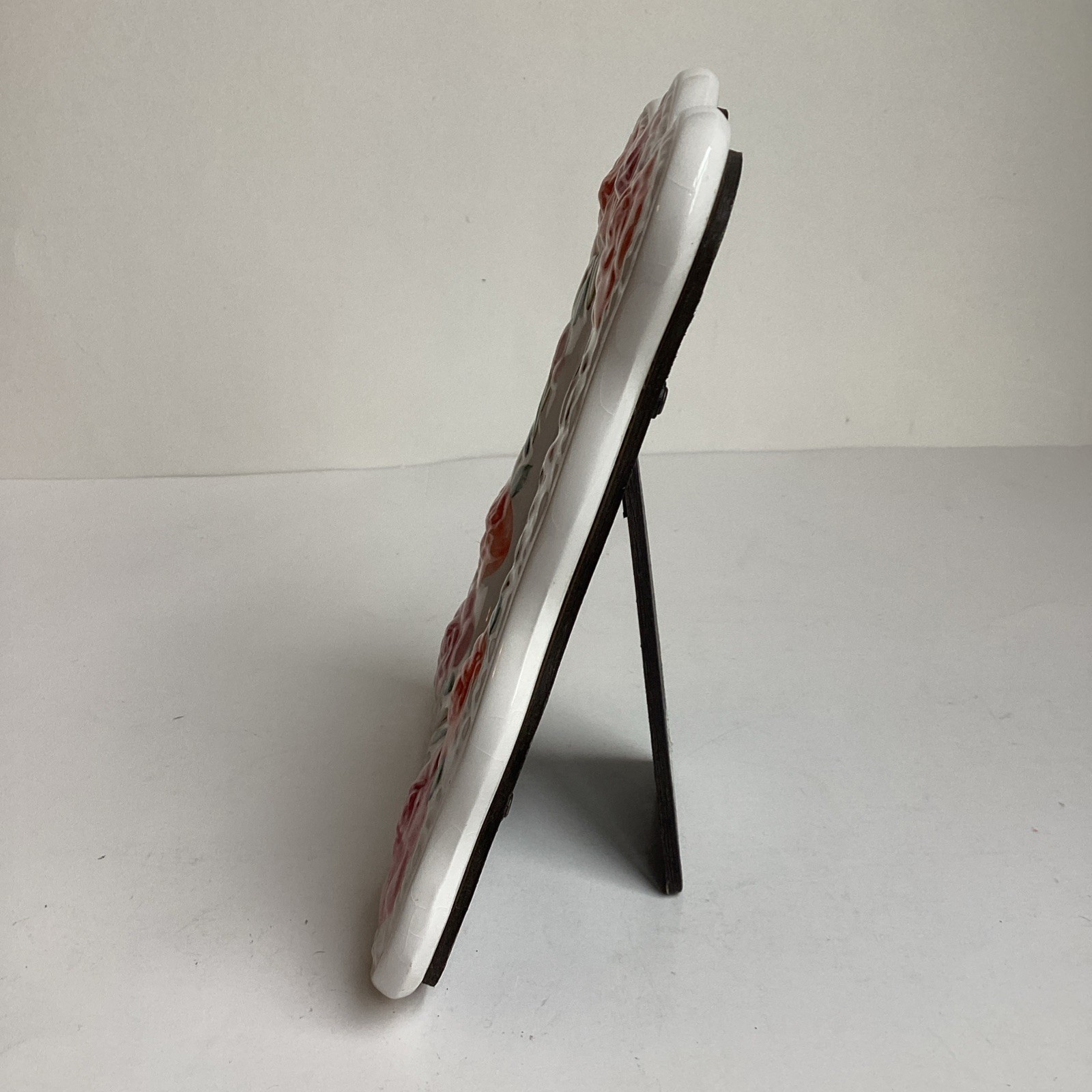 как выглядит Embossed Floral Roses Ceramic Picture Frame Pink Orange Vintage Taiwan фото