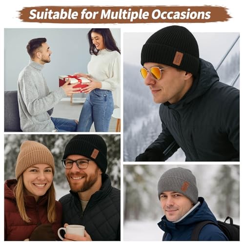 как выглядит Winter Beanie for Men Women: Polar Fleece Lined Beanie One Size Charcoal Black фото
