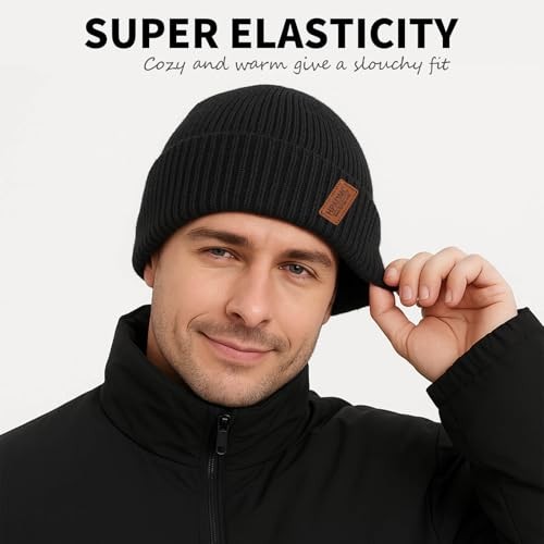Winter Beanie for Men Women: Polar Fleece Lined Beanie One Size Charcoal Black