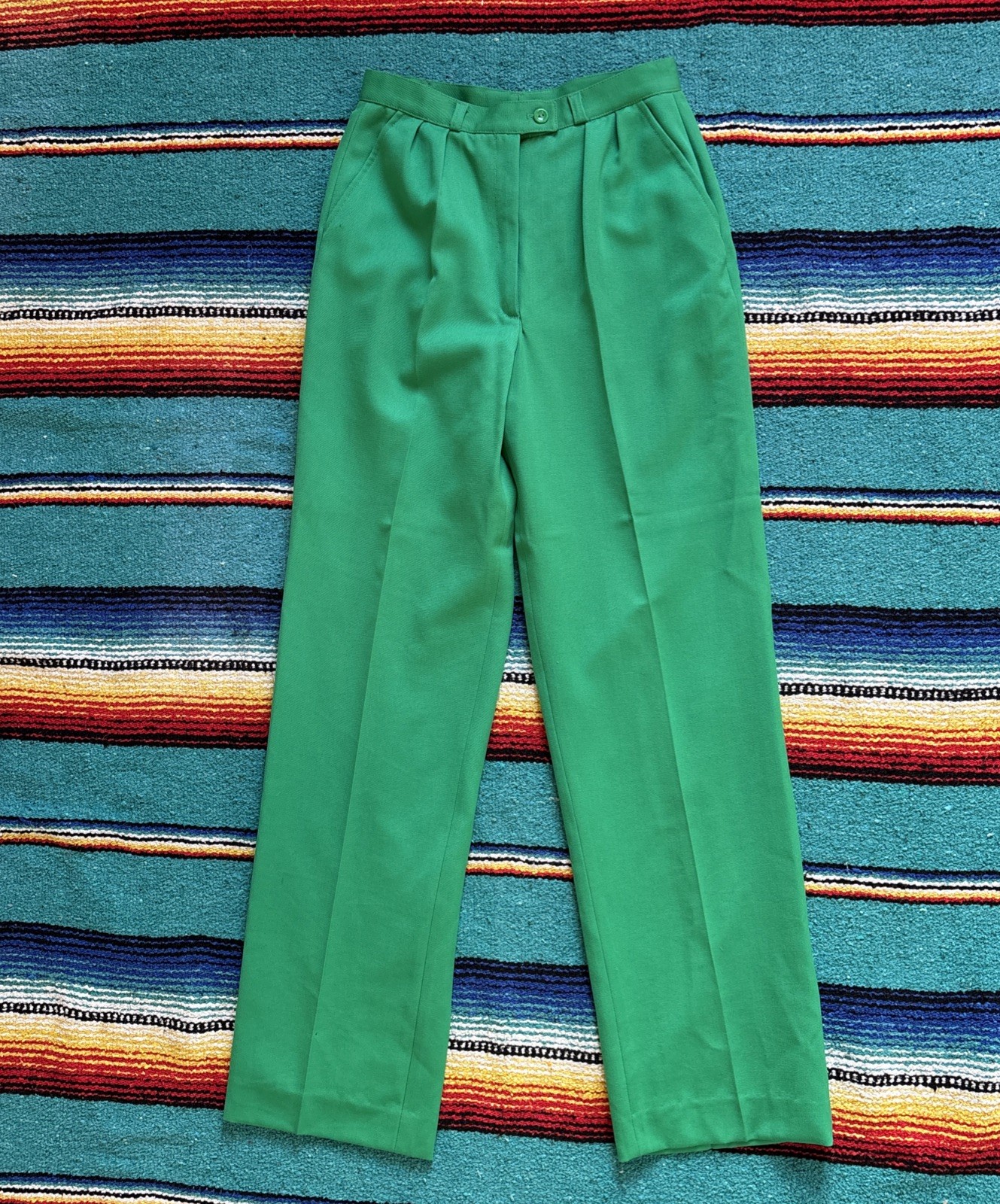 Adolph Schuman Lilli Ann Kelly Green Pleated Wool Blend Trousers 27x32 VTG