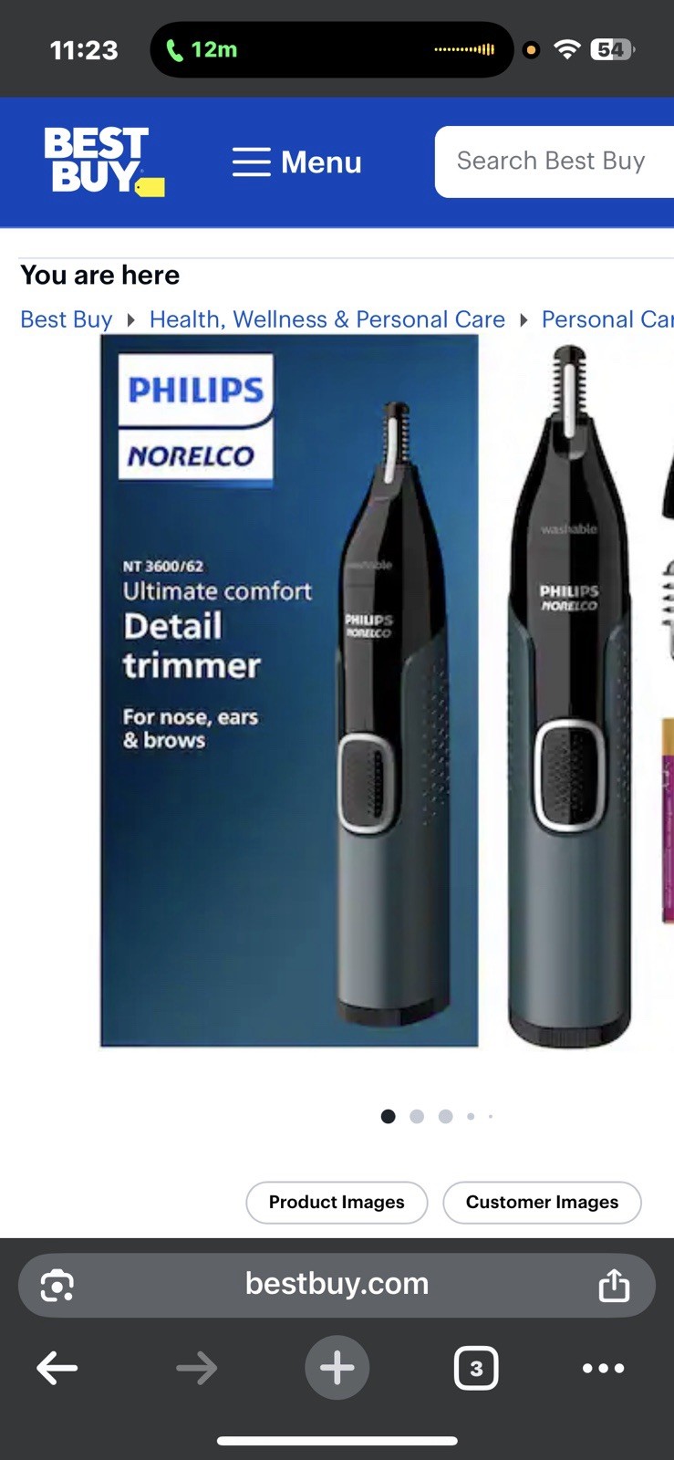 Philips Norelco Nose Ear Eyebrow Trimmer NT3600/62 Washable No Pull