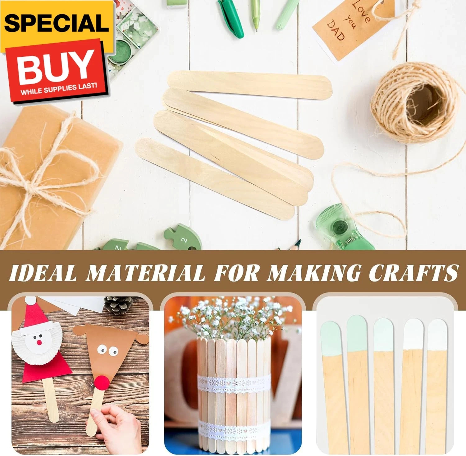 как выглядит 250 Pieces Jumbo Craft Sticks, 8 Inch Wooden Large Tongue Depressor Sticks, Jumb фото