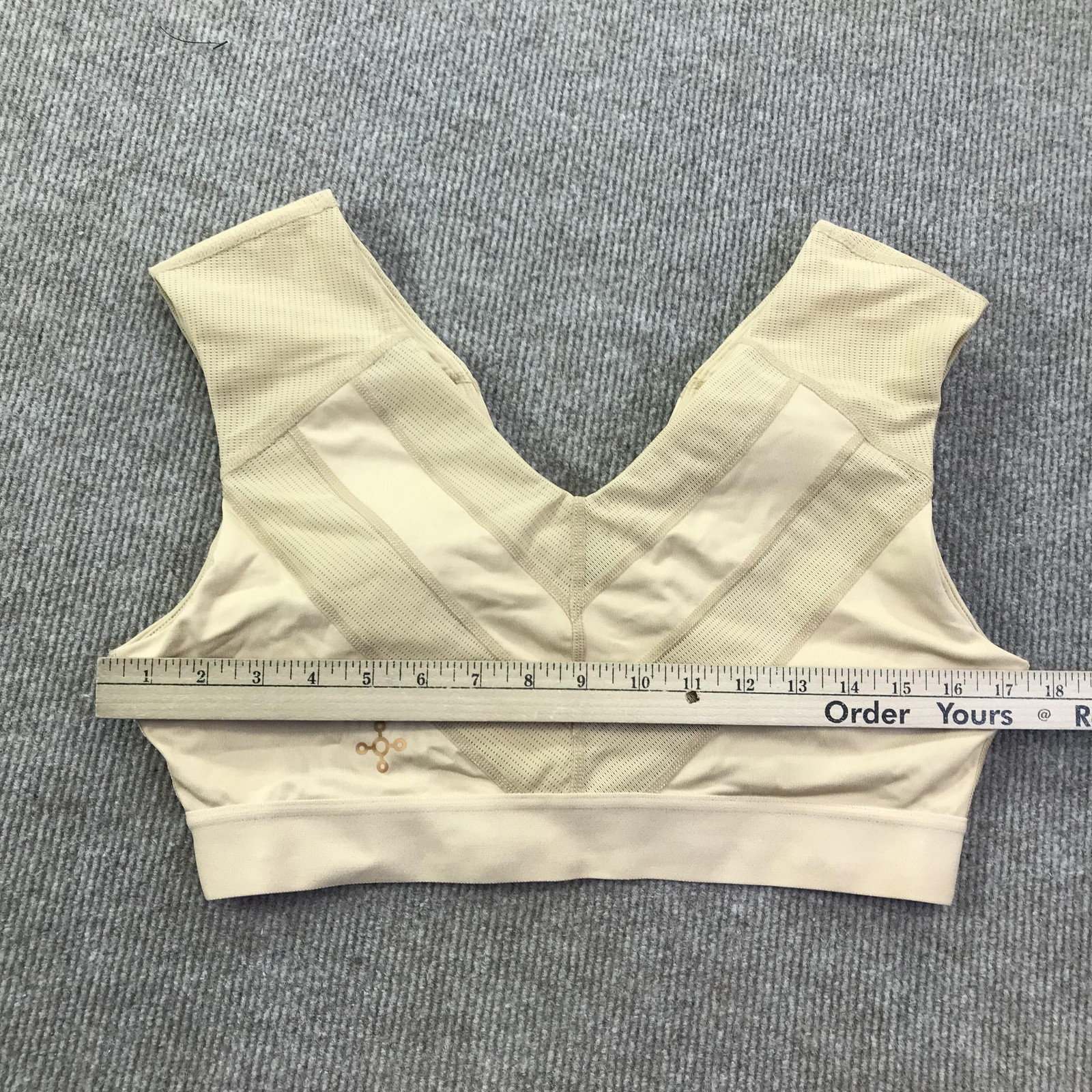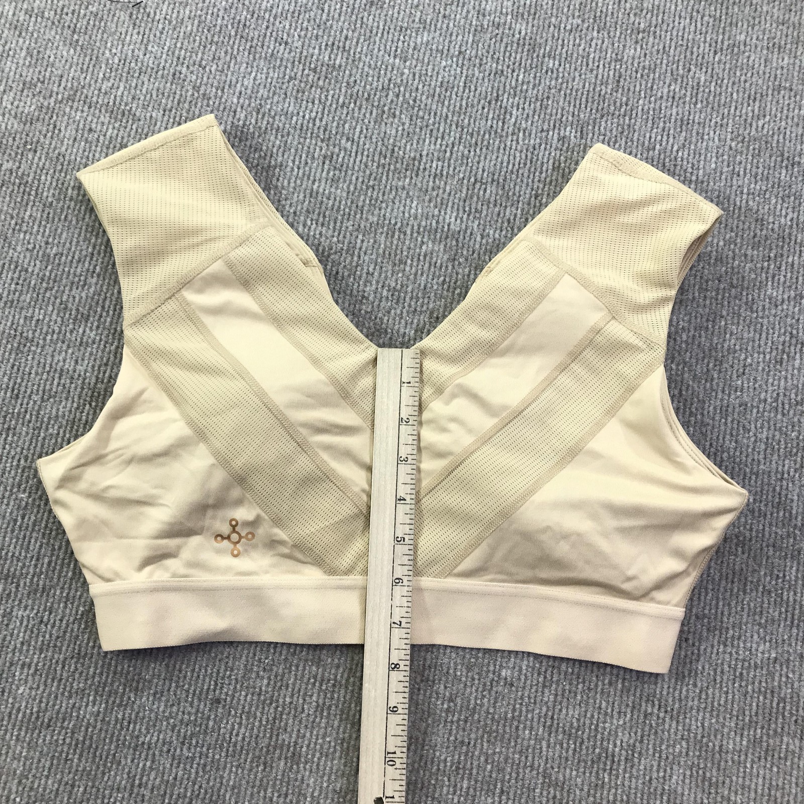 как выглядит Tommie Copper Sports Bra Womens XL Beige Zip Front Shoulder Support Activewear фото