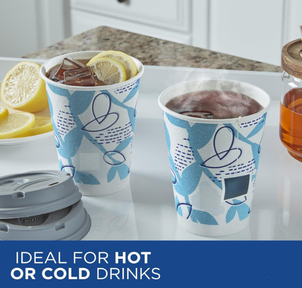 как выглядит Paper Coffee Cups with lids 12 oz Disposable 14 Pack Hot Beverages plant-based фото