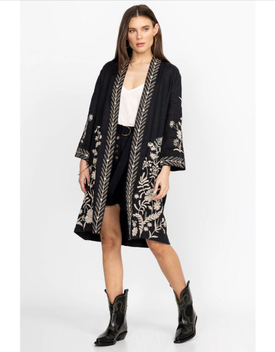 Johnny Was Marseille Linen Black Embroidery Kimono Coat Size XS