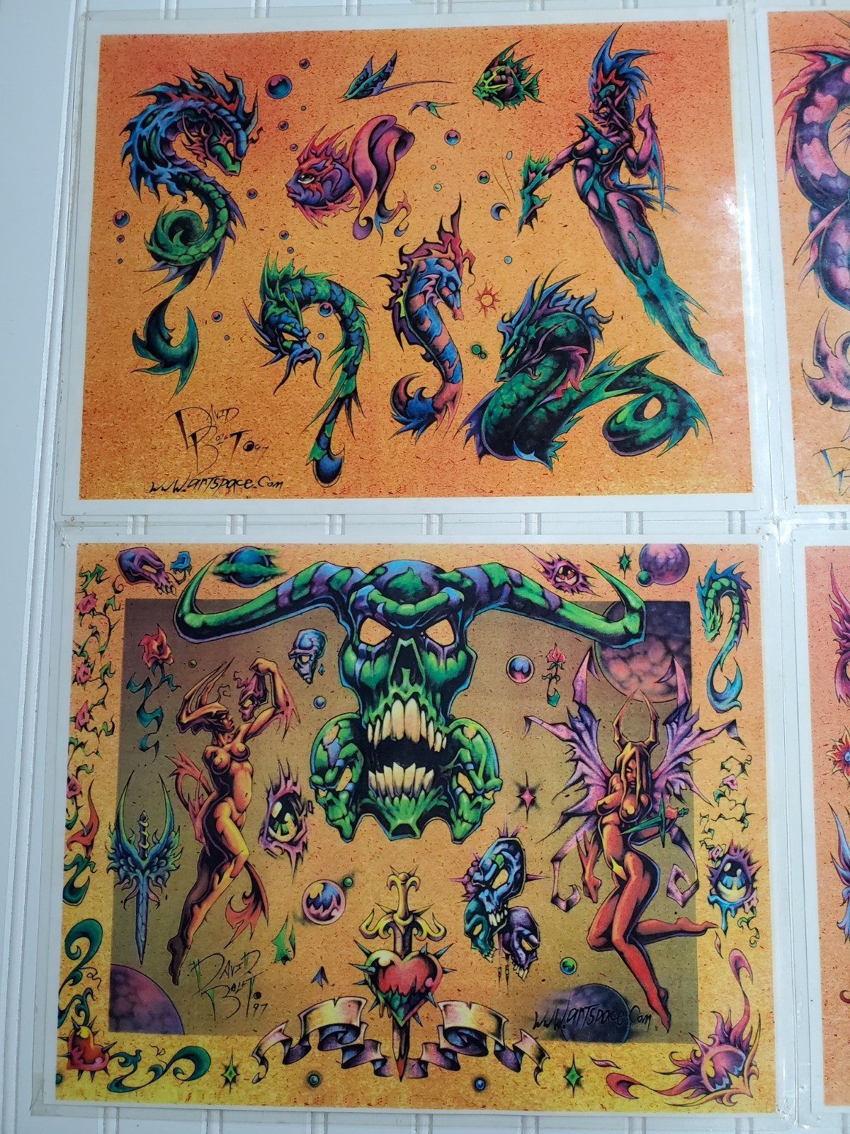как выглядит 90s Tattoo Flash Art Page Lot David Bollt 1997 Full Color 5 Pages фото