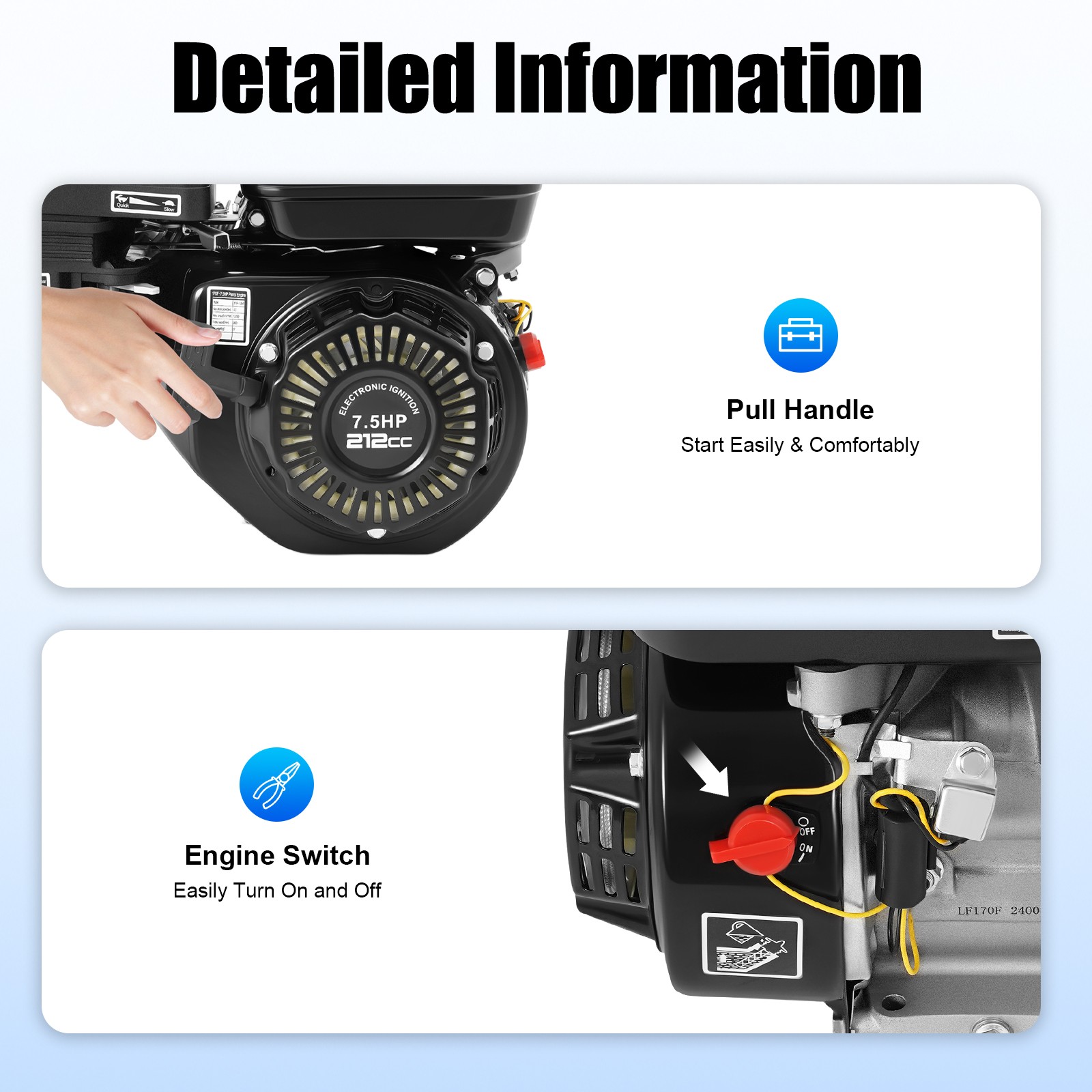 7.5HP Gas Engine 4-Stroke 212cc for Honda GX160 Go Kart Log Splitter Mini Bike