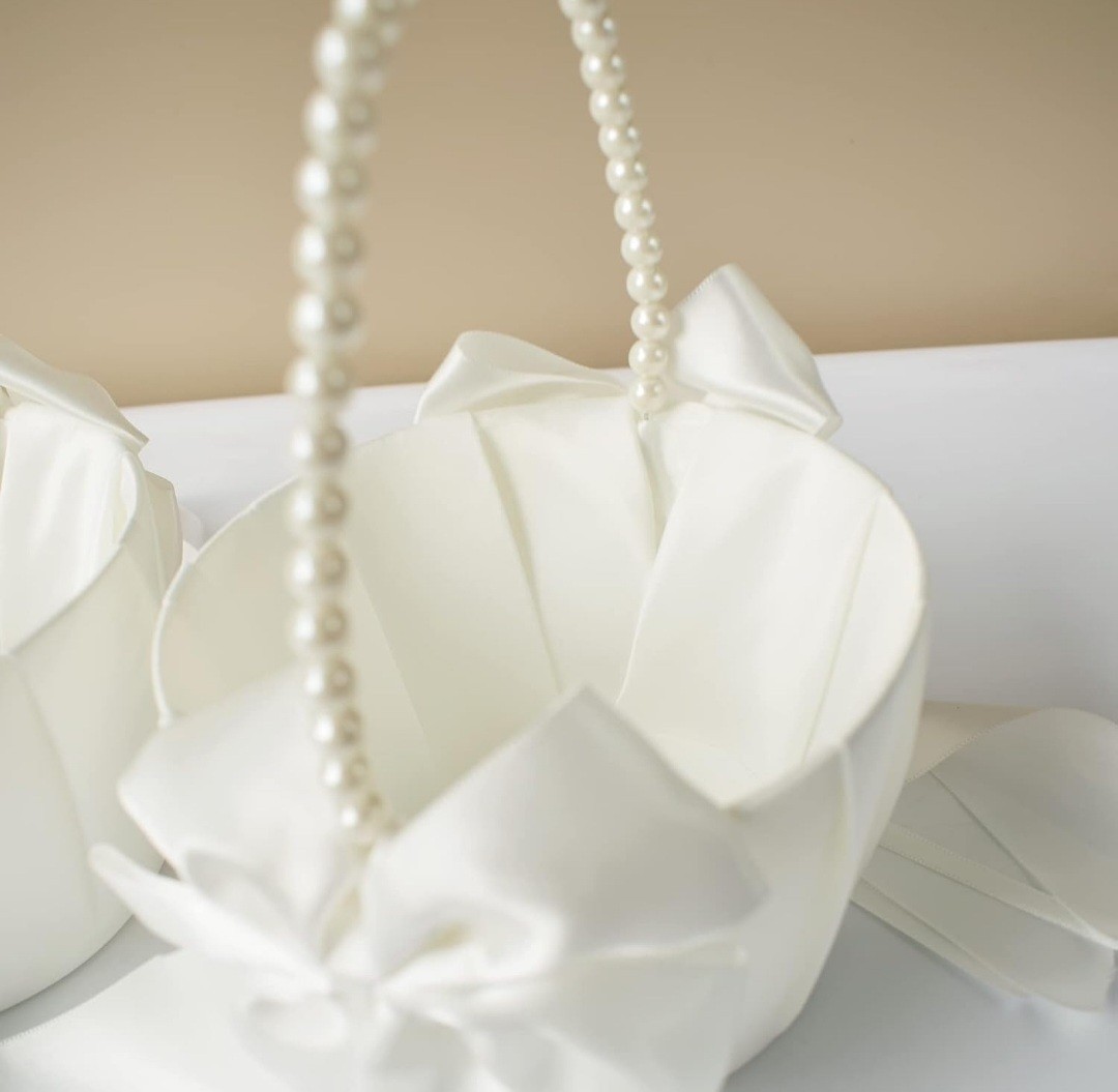 как выглядит Flower girl Baskets Set Of 2 Satin With Pearl Handles For Wedding фото
