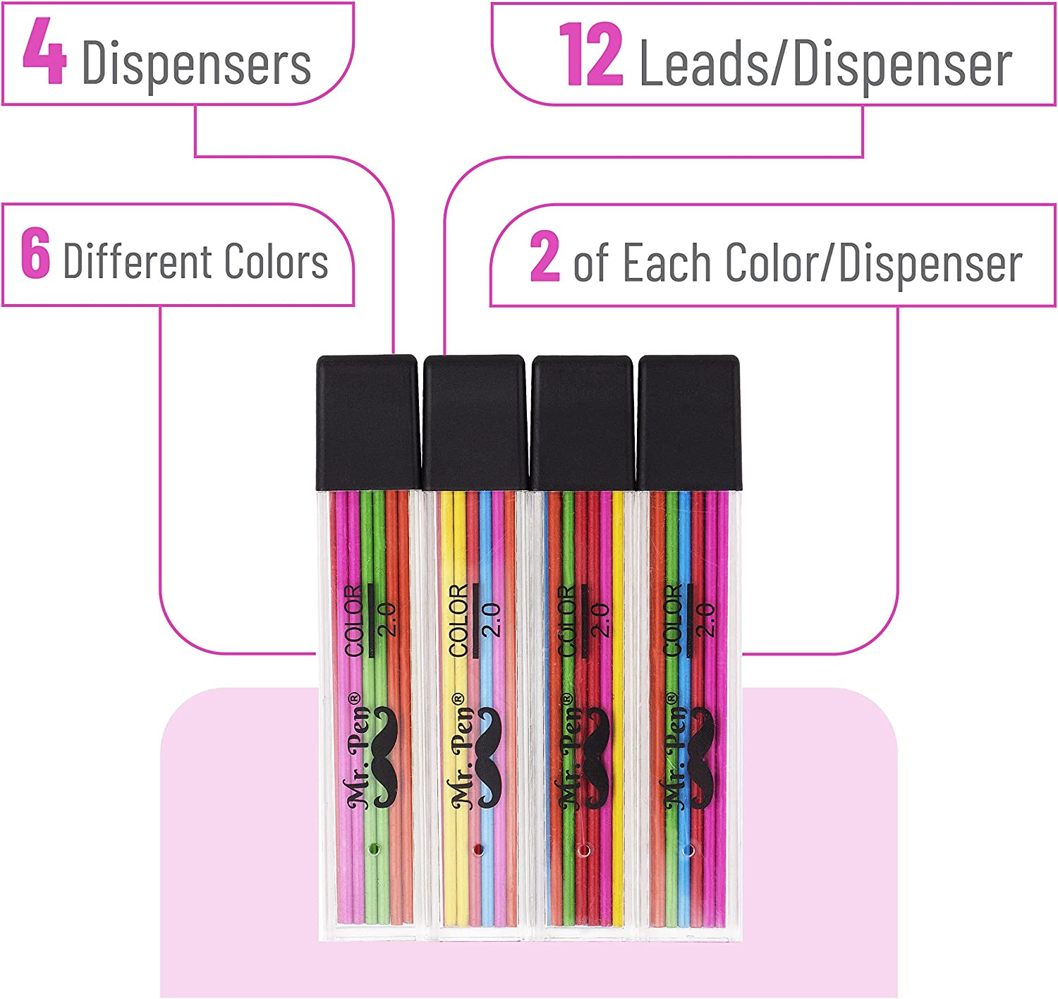 - 2Mm Lead Refills, 48 Pack, Colored Mechanical Pencils, 2.0 Mm Lead Refills