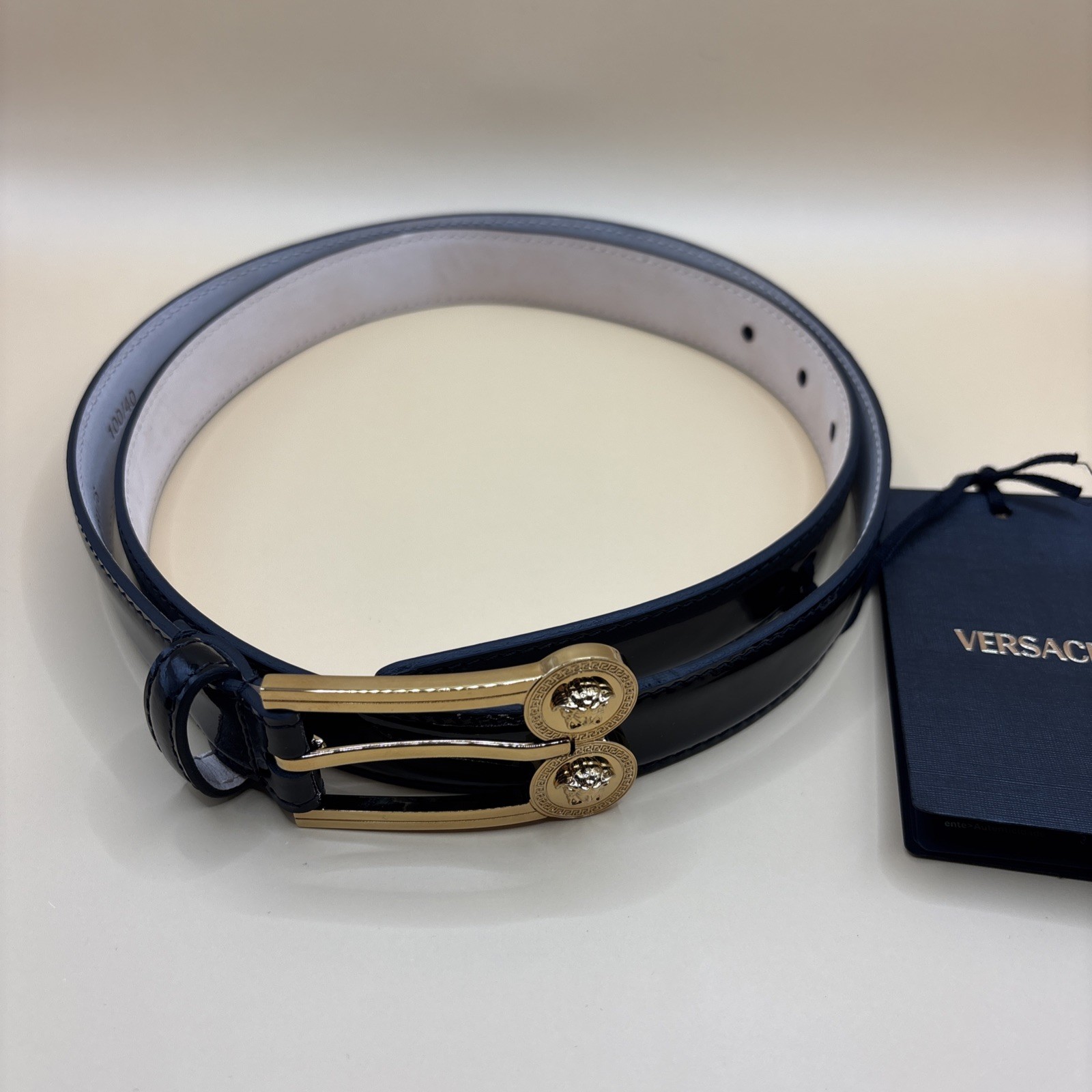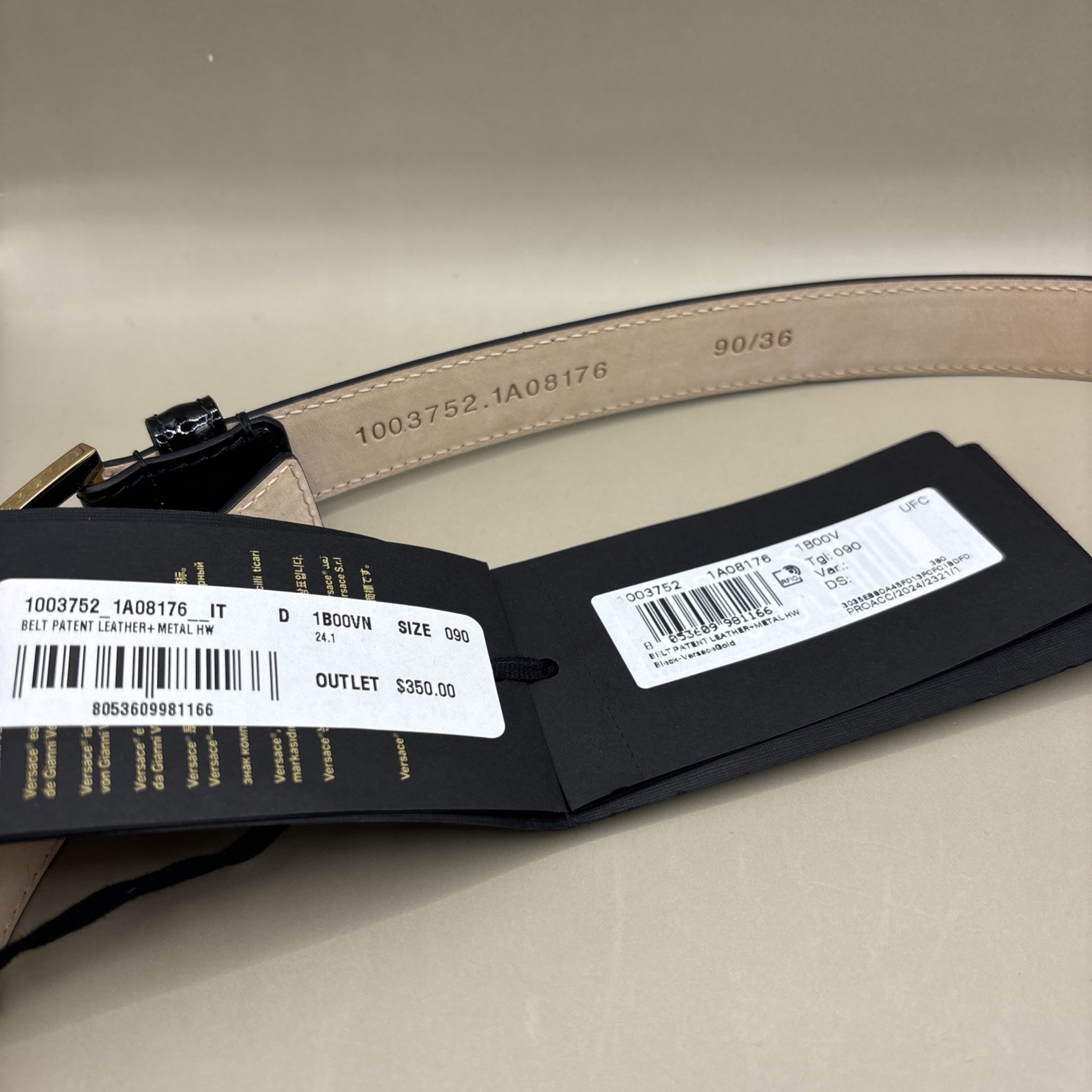 Versace Belt Patent Leather Metal Black And Gold 90 36 Authentic 600 Retail