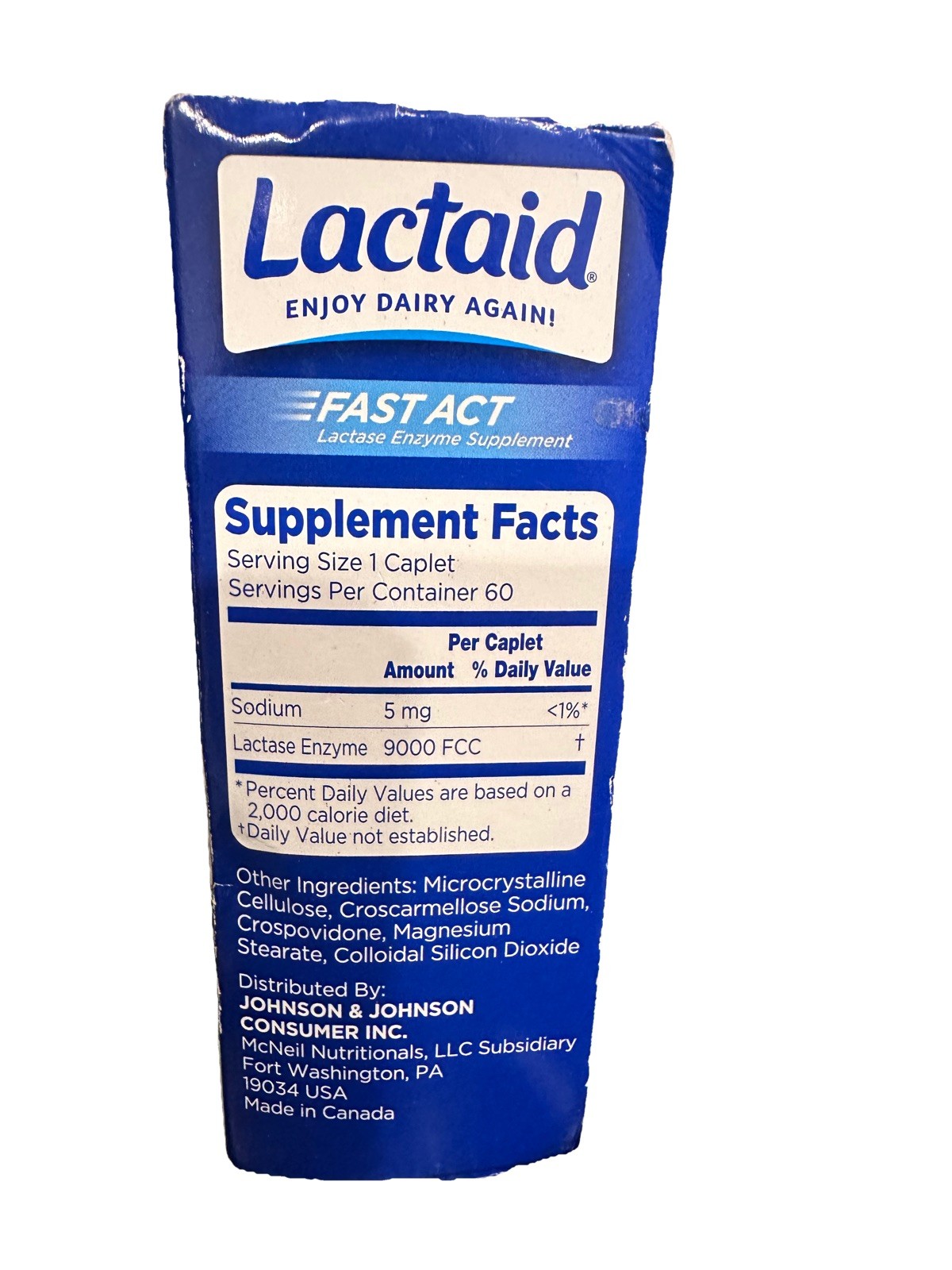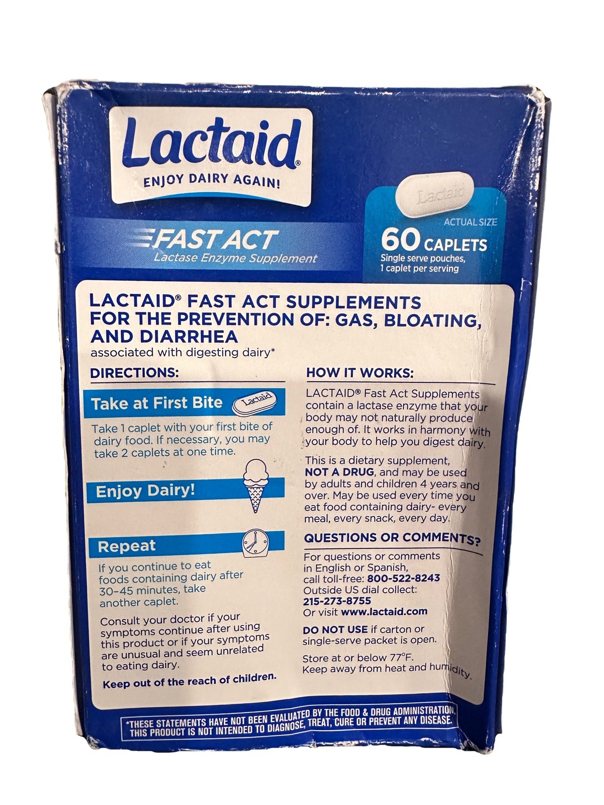 LACTAID PILLS TABLETS FAST ACT LACTOSE DAIRY INTOLERANCE LACTASE ENZYME 60 CT