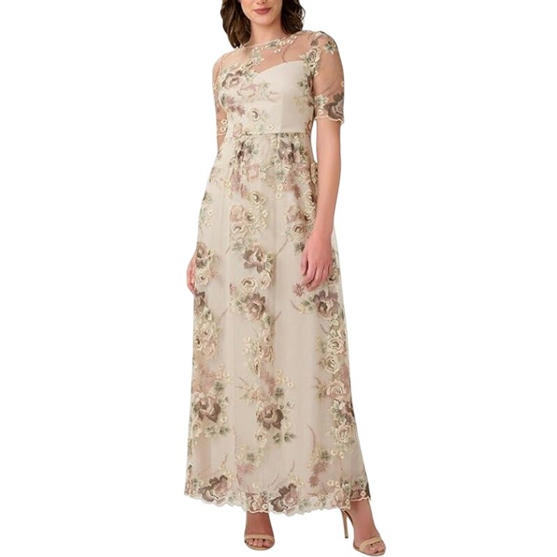 как выглядит Adrianna Papell 10 NEW Long Illusion Embellished Evening Formal Gown Wedding фото