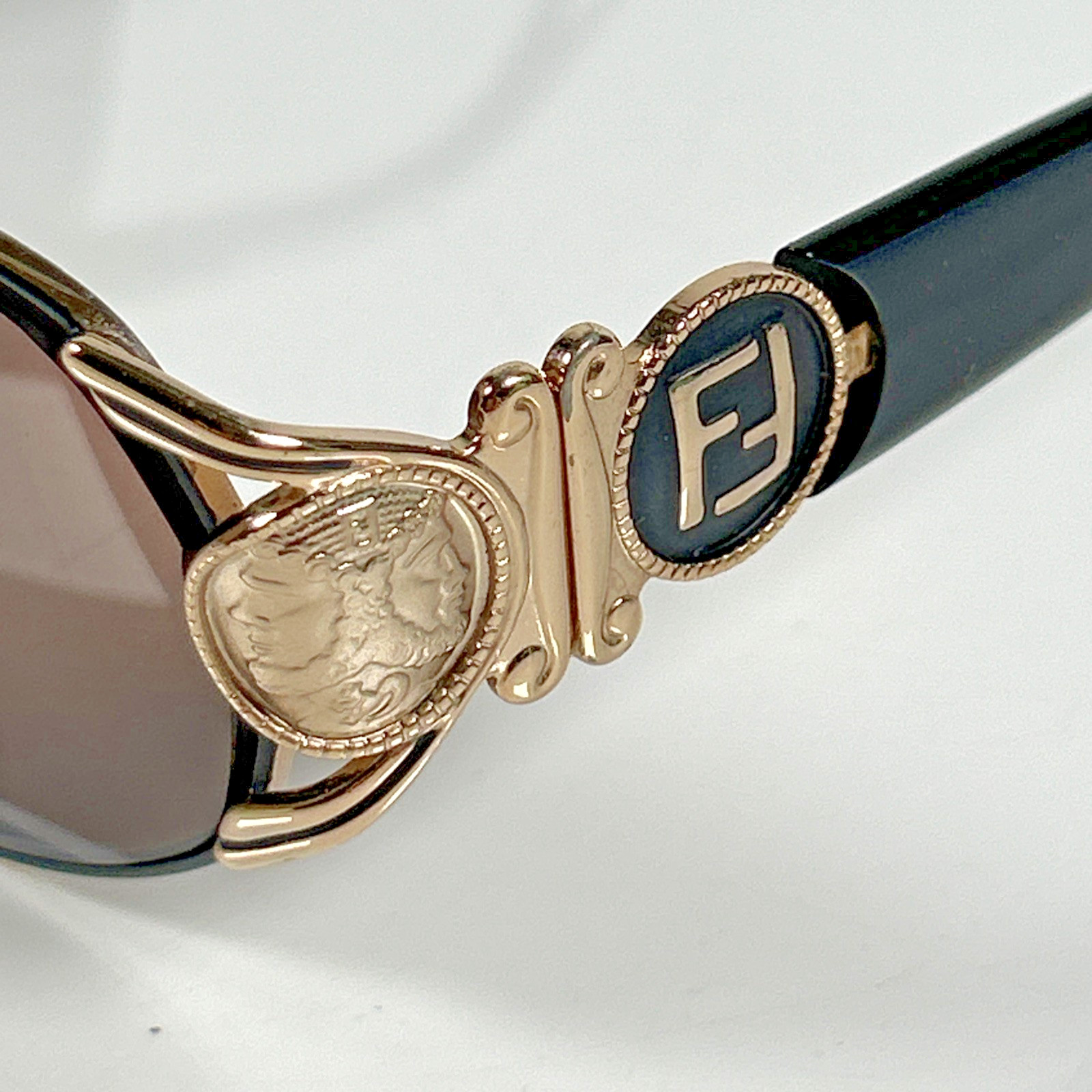 VTG Fendi FS 140 Black Gold Frame bifocal Lens Sunglasses w/ Case Made in Italy