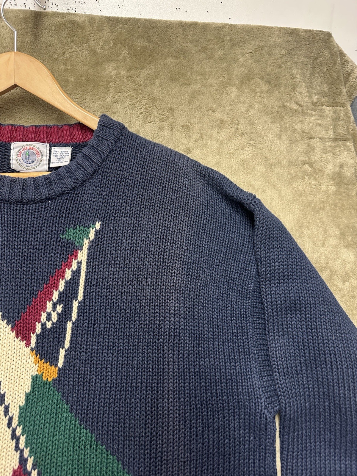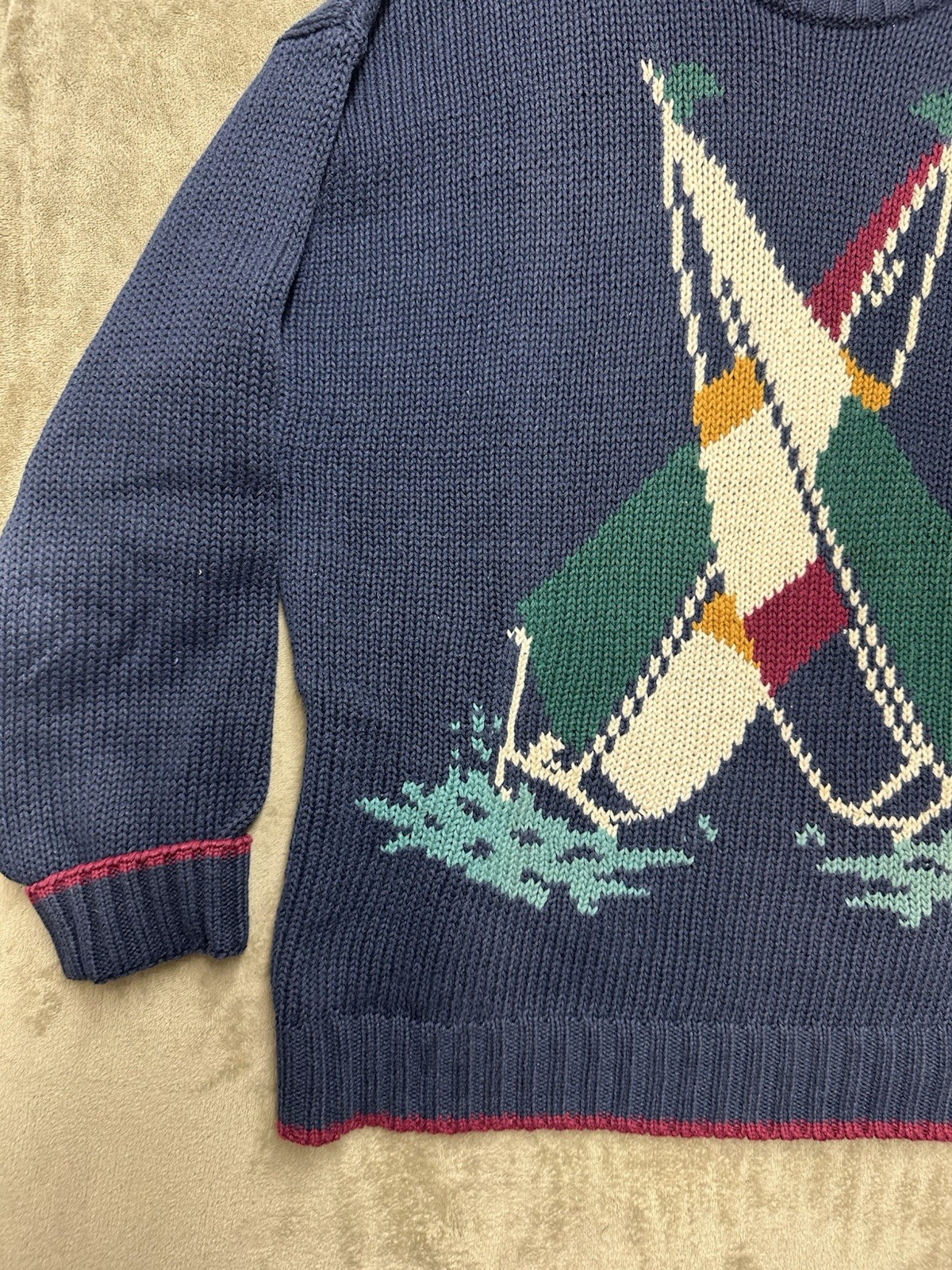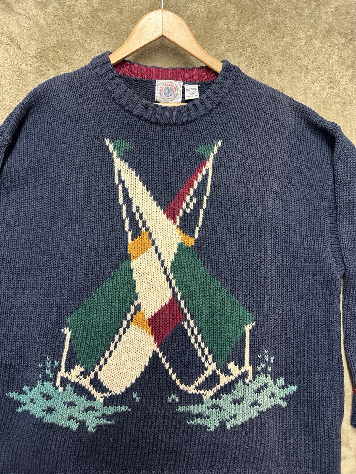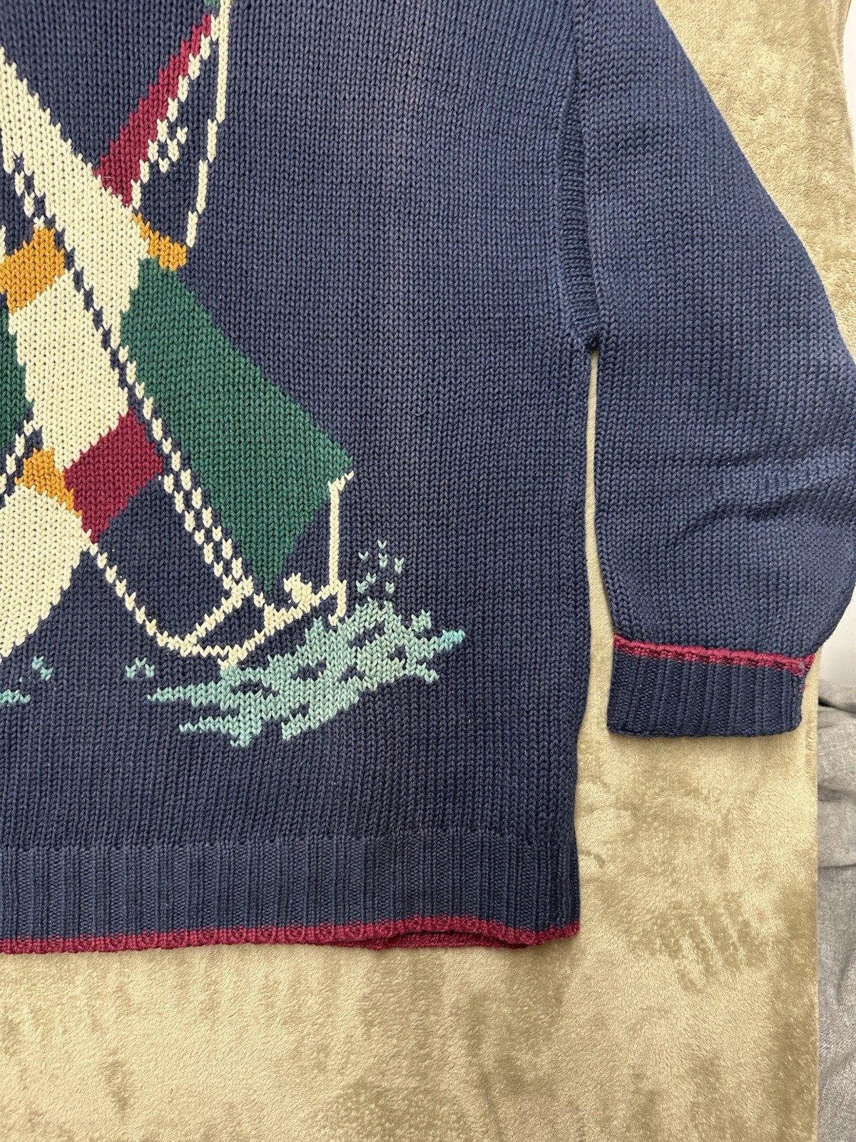 Vintage Cape Isle Knitters Sweater Sail Boats Crashing at sea Size XL