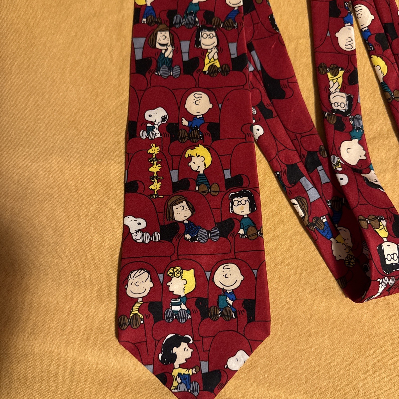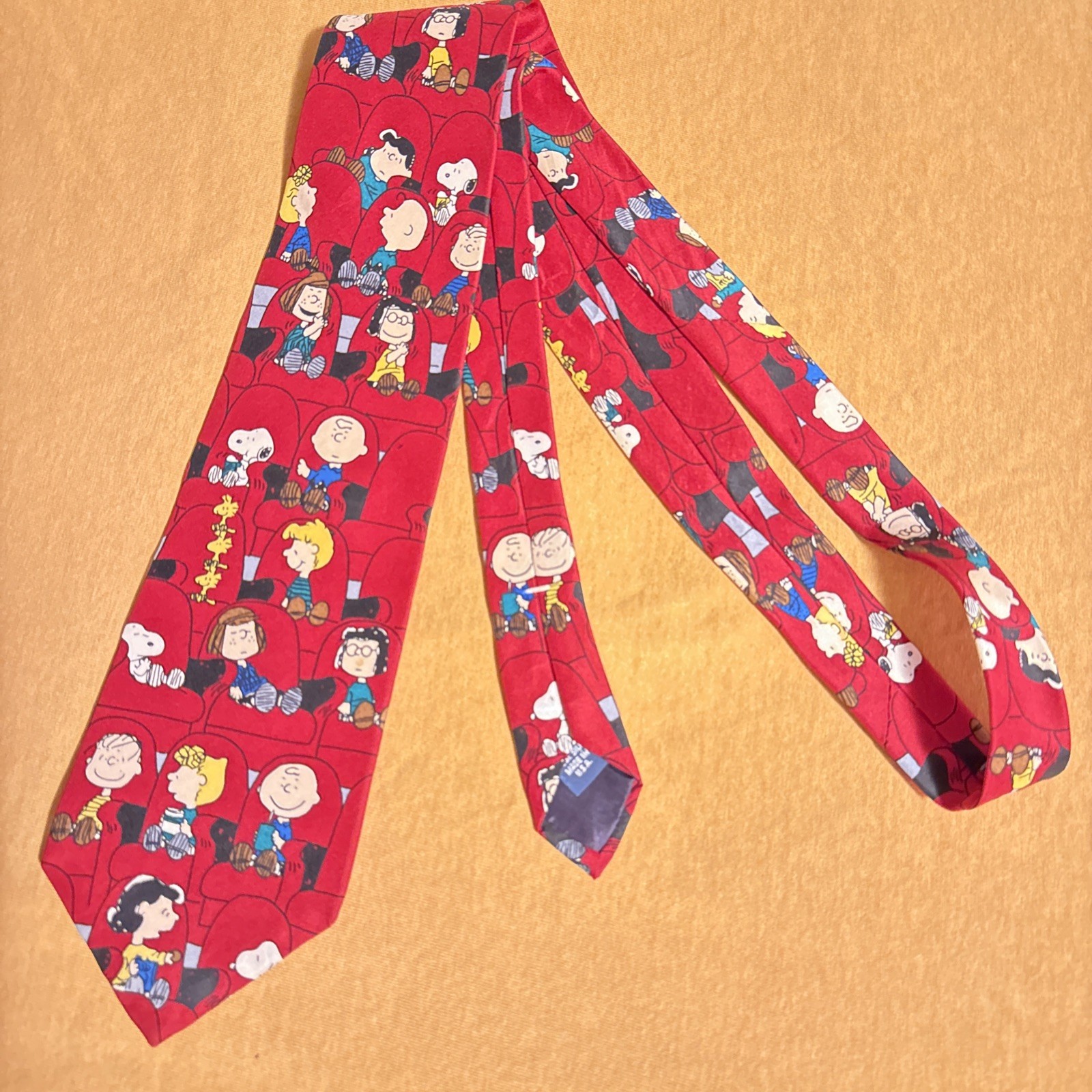 как выглядит VTG Peanuts Charlie Brown Snoopy Silk Necktie Made In USA Movie theater scene фото