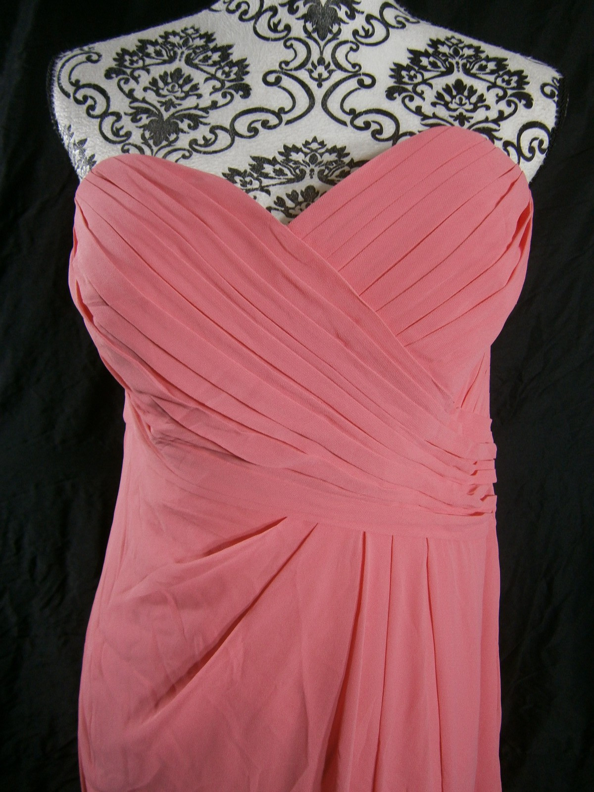 Bill Levkoff 1207 Coral Chiffon Formal Bridesmaid Dress 10 Strapless Slit NEW