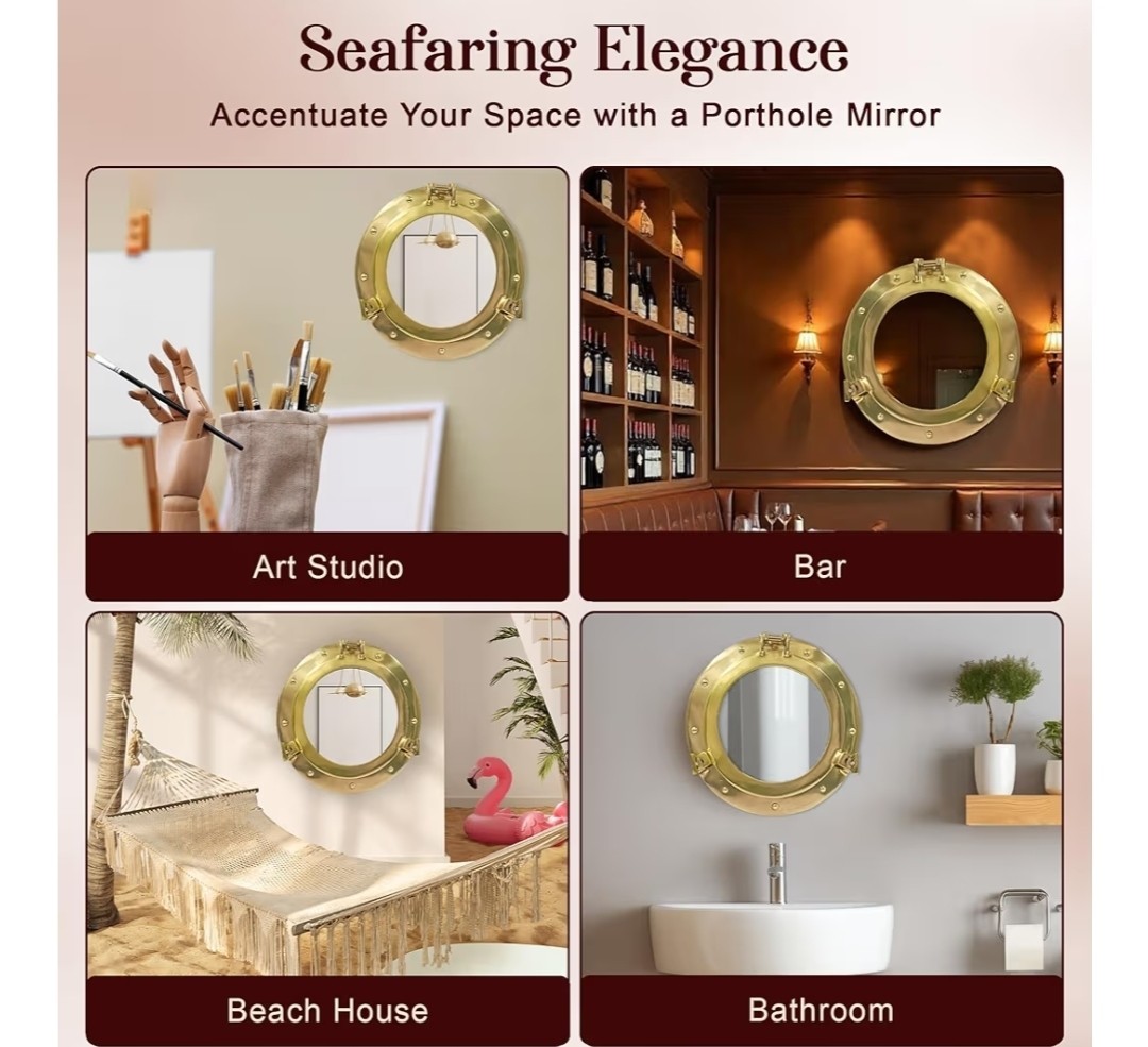 как выглядит 10 Inch Nautical Wall Decor Porthole Mirror - Aluminum Vintage Mirror... фото